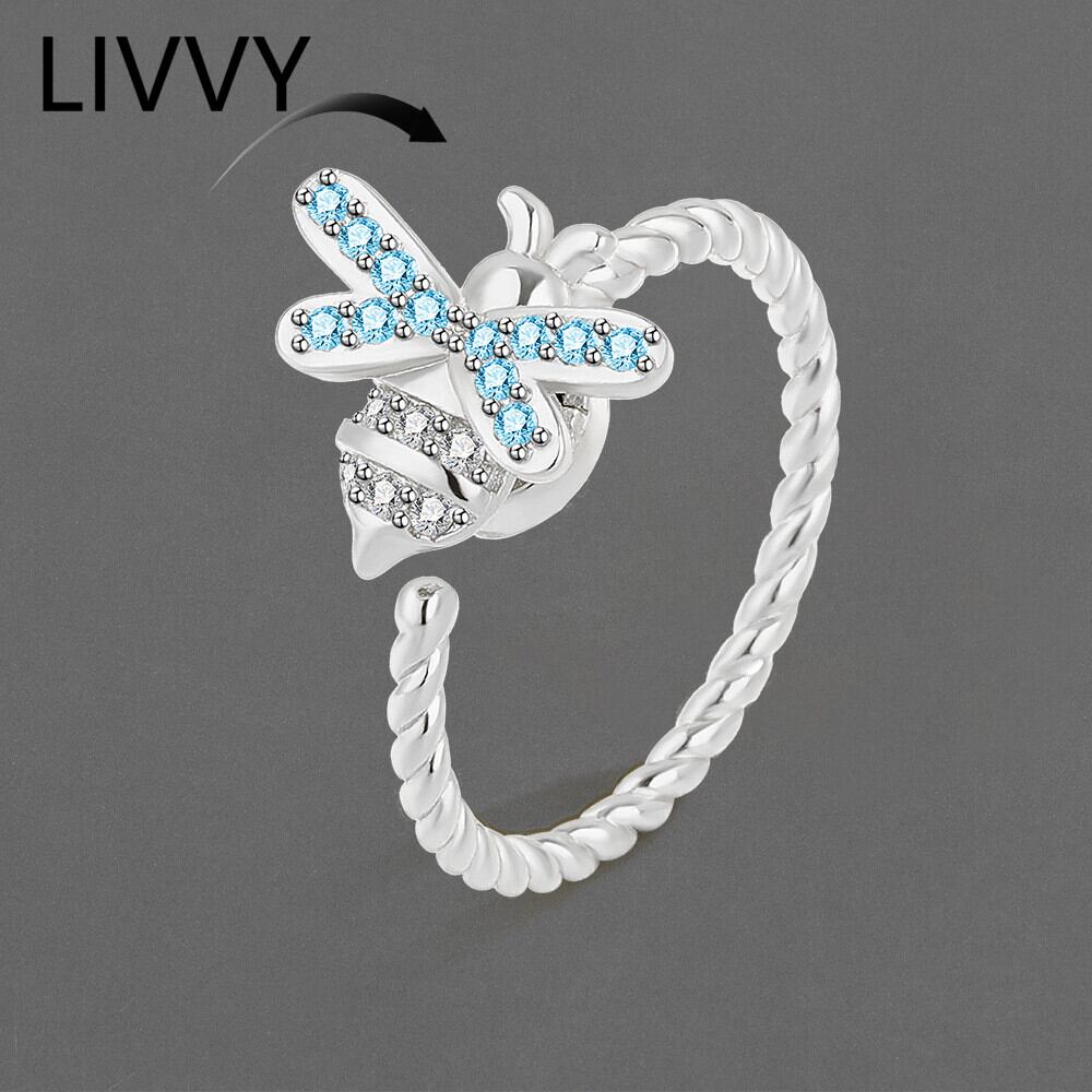 LIVVY シルバーカラークリエイティブかわいい回転蜂調節可能リングガールパーティーファインジュエリーミニマリストアクセサリー 大人ガーリー スウィート キュート カジュアル アジャスタブル 指輪 銀