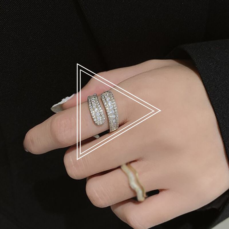 LIVVY クリスタルジルコン調節可能リングチャームゴールドカラージオメトリウェディングトレンディジュエリー飾り アジャスタブル 指輪