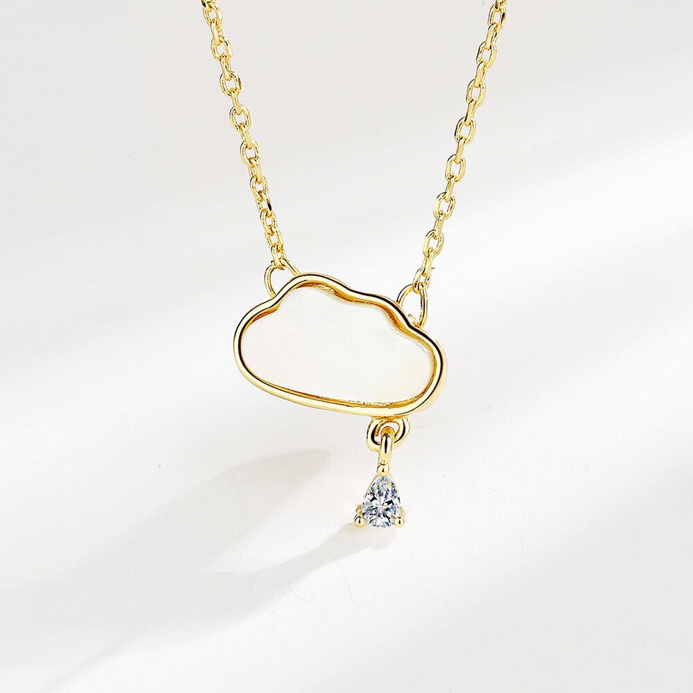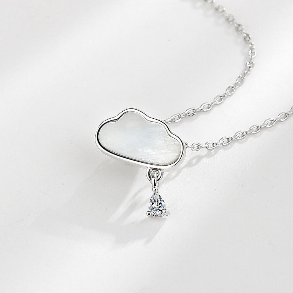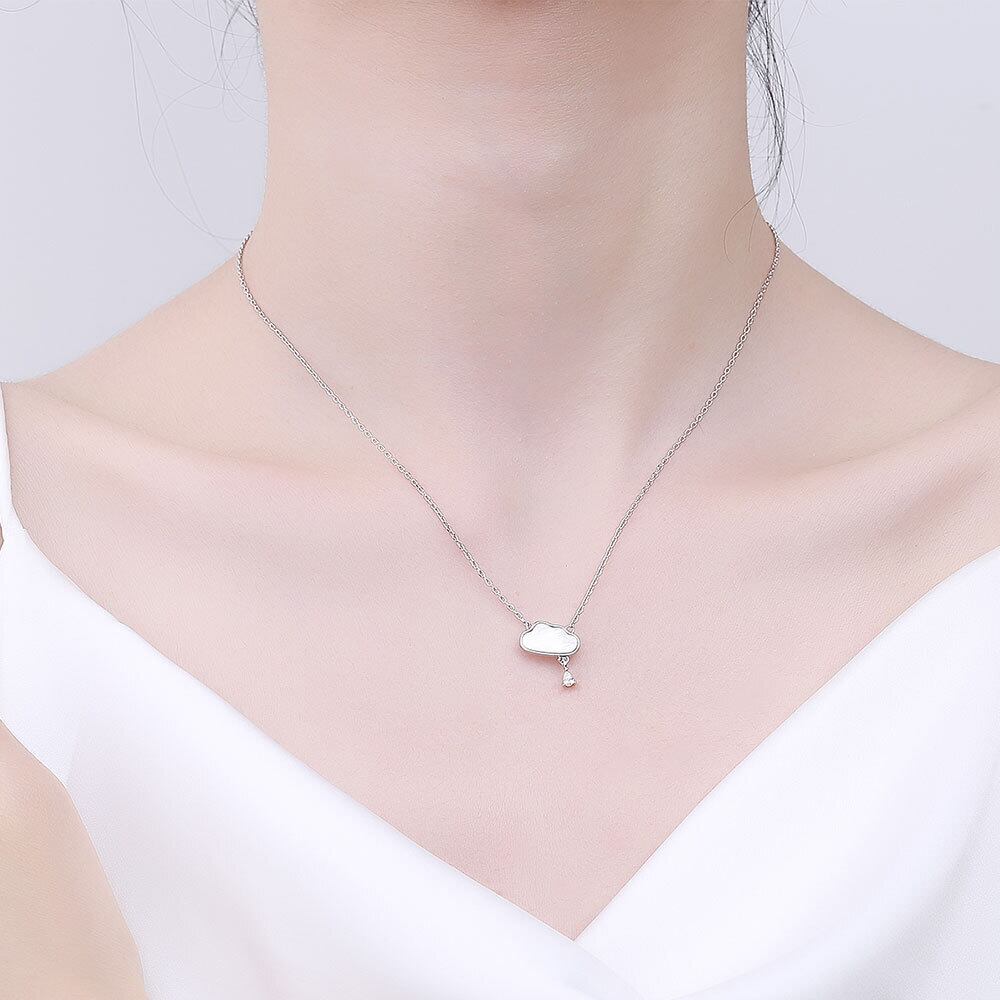 LIVVY シルバーカラーホワイトクラウドネックレス鎖骨チェーンシンプルかわいいクリスタルジルコンペンダントネックレスジュエリー レース 大人ガーリー スウィート キュート カジュアル 銀