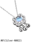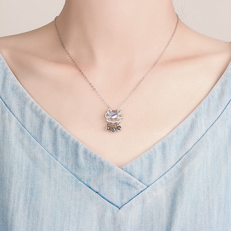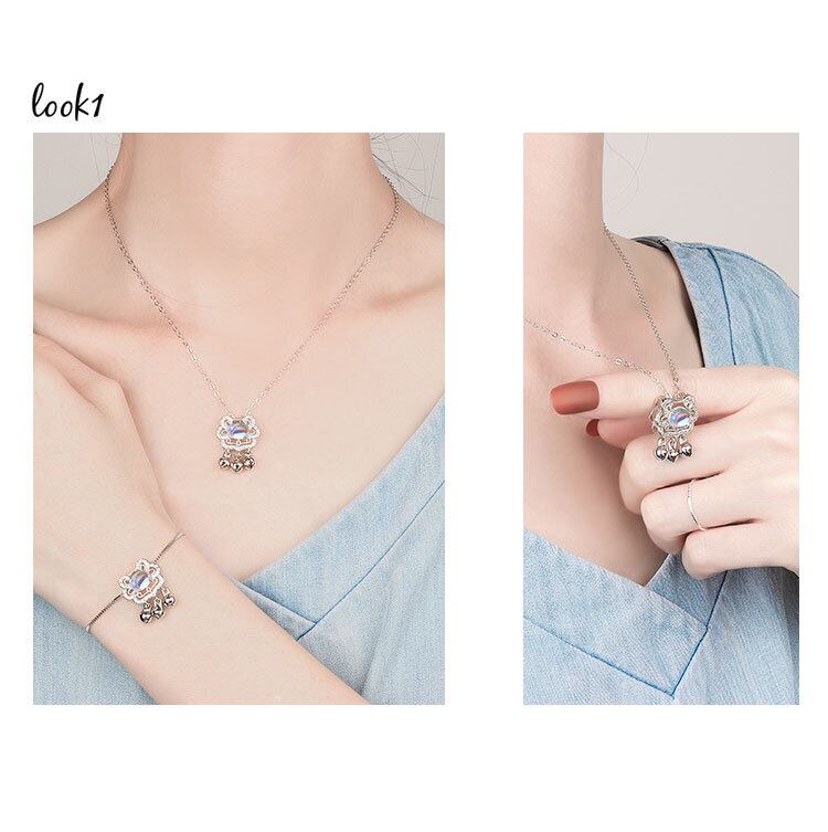 LIVVY シルバーカラークリエイティブムーンストーン長寿ロックペンダントネックレスファインジュエリーギフトアクセサリー ロング レース 銀