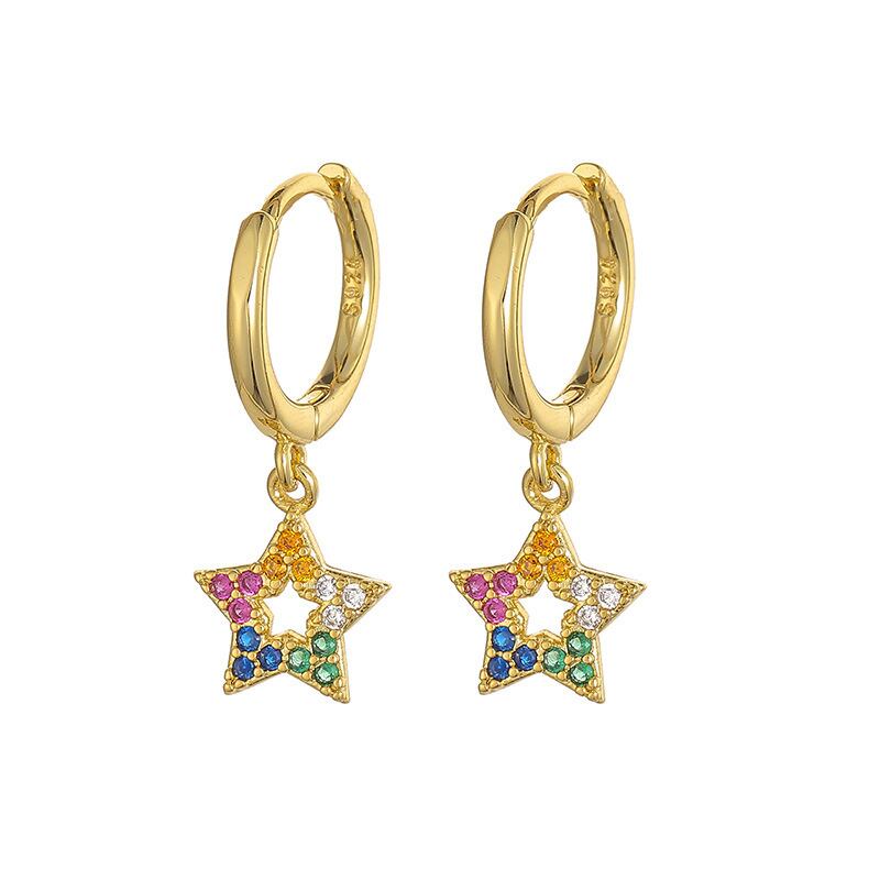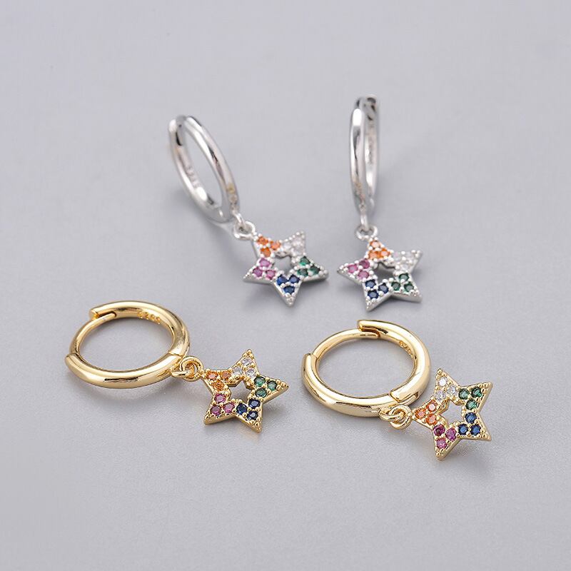LIVVY シルバーカラー カラフル ジルコン 中空 スター イヤリング レディース シンプル 絶妙 ジュエリー 指輪 銀