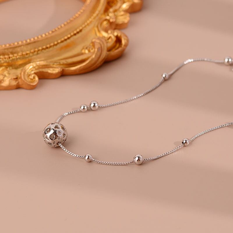 LIVVY シルバーカラー ミニマリスト 中空ボール ブレスレット レディース 絶妙 ユニーク シンプル ハンドメイド ジュエリー ギフト 銀