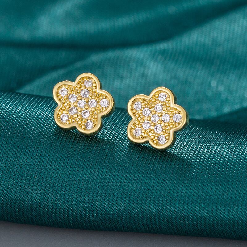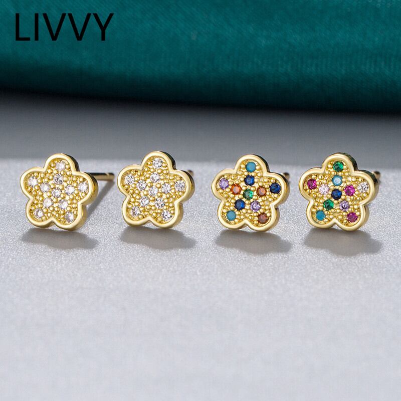 LIVVY カラフル ジルコン フラワー スタッド ピアス 美しい ジュエリー シンプル 女子 レディース アクセサリー イヤリング リング 指輪 フラワーデザイン