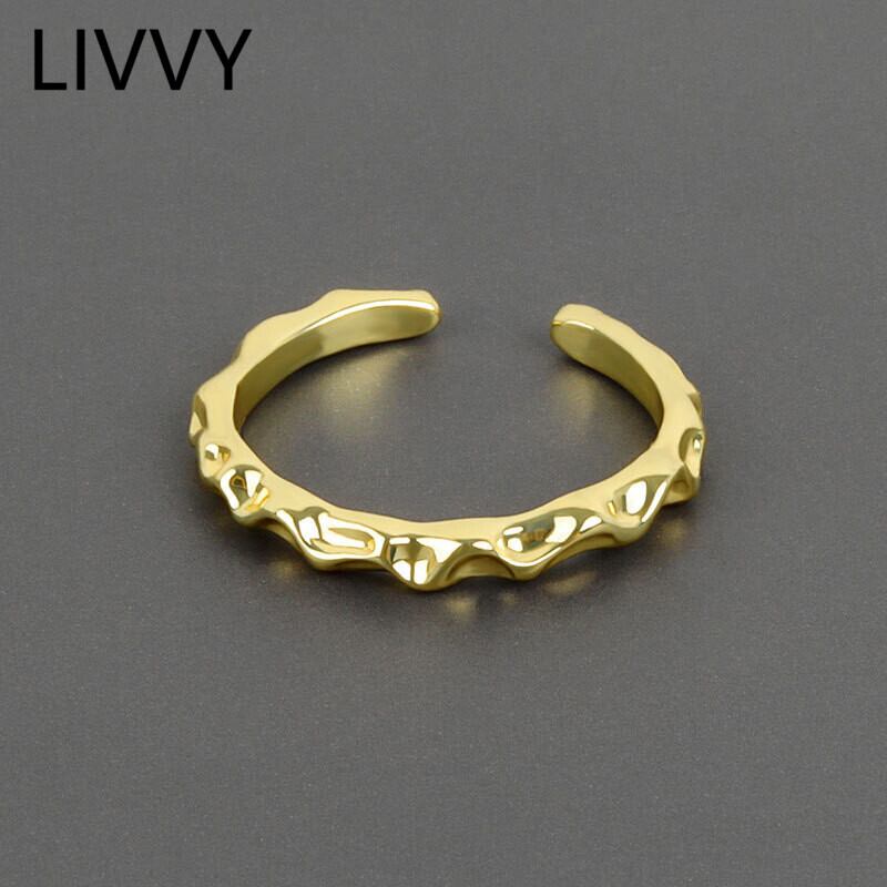 LIVVY シルバーカラーミニマリスト不規則オープン調節可能リングシンプル Clic ジュエリー誕生日プレゼント アジャスタブル 指輪 銀
