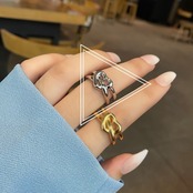 LIVVY シルバーカラーオープン二重層中空アウトハート調節可能リングシンプルクリエイティブジュエリーギフト アジャスタブル 指輪 銀
