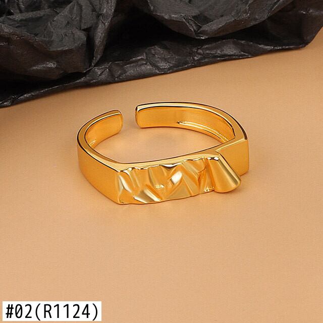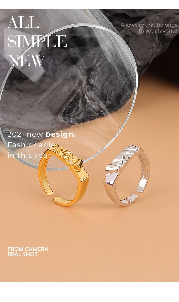 LIVVY シルバーカラー 長方形 不規則凹凸面 調節可能リング ユニークジュエリー パーティーギフト アジャスタブル 指輪 銀