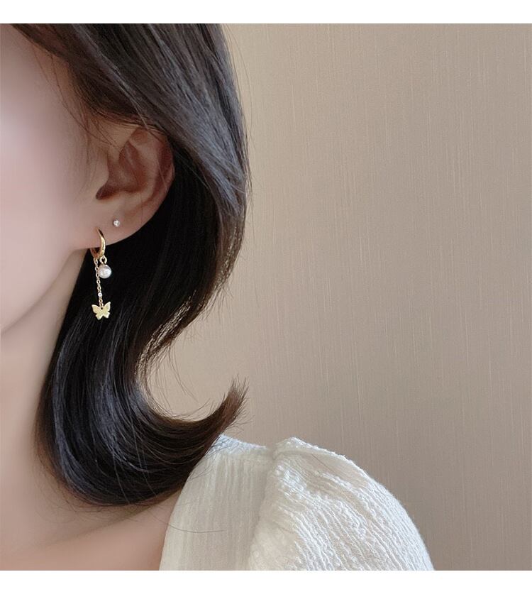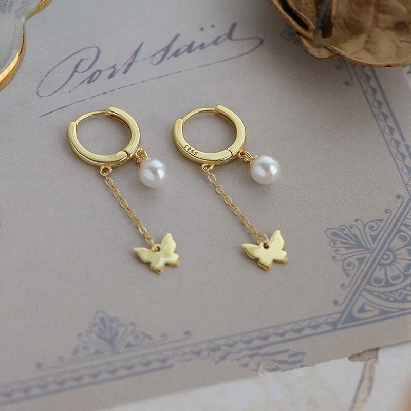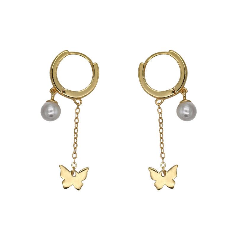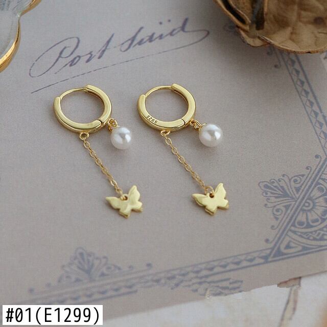LIVVY シルバーカラー Tel 蝶パールペンダントイヤリングシンプルショート絶妙ジュエリー 真珠 指輪 銀