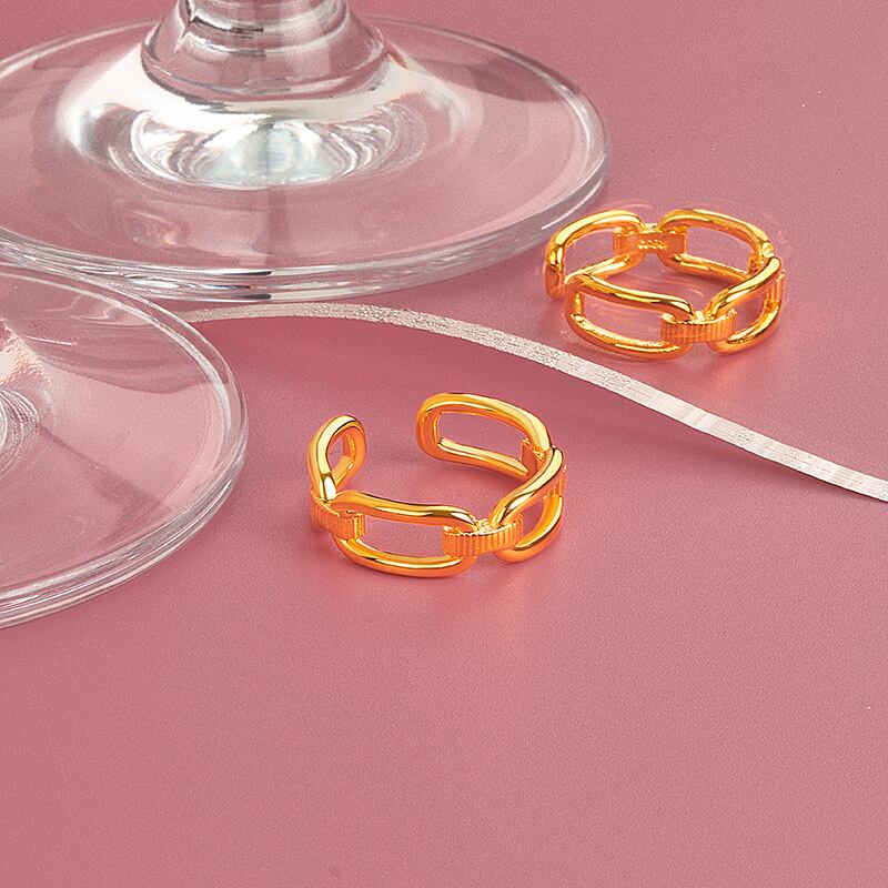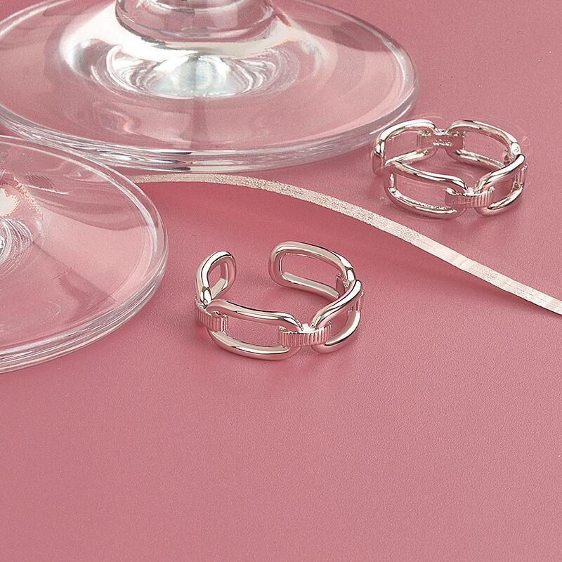 LIVVY シルバーカラーオーバルチェーンリングシンプル気質絶妙調節可能ジュエリーギフト アジャスタブル 指輪 銀