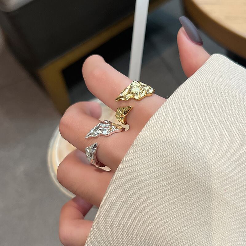 LIVVY シンプルシルバーカラー凹凸リング不規則パターン女子誕生日パーティージュエリーギフト 指輪 銀