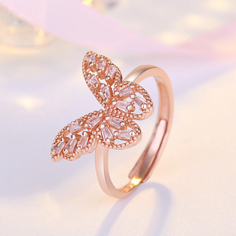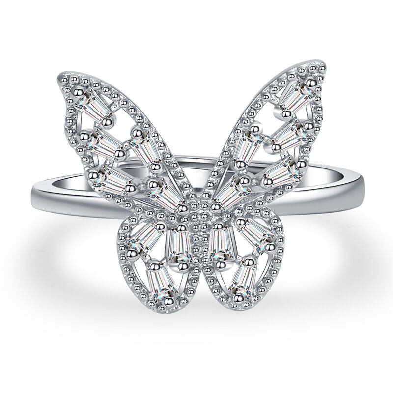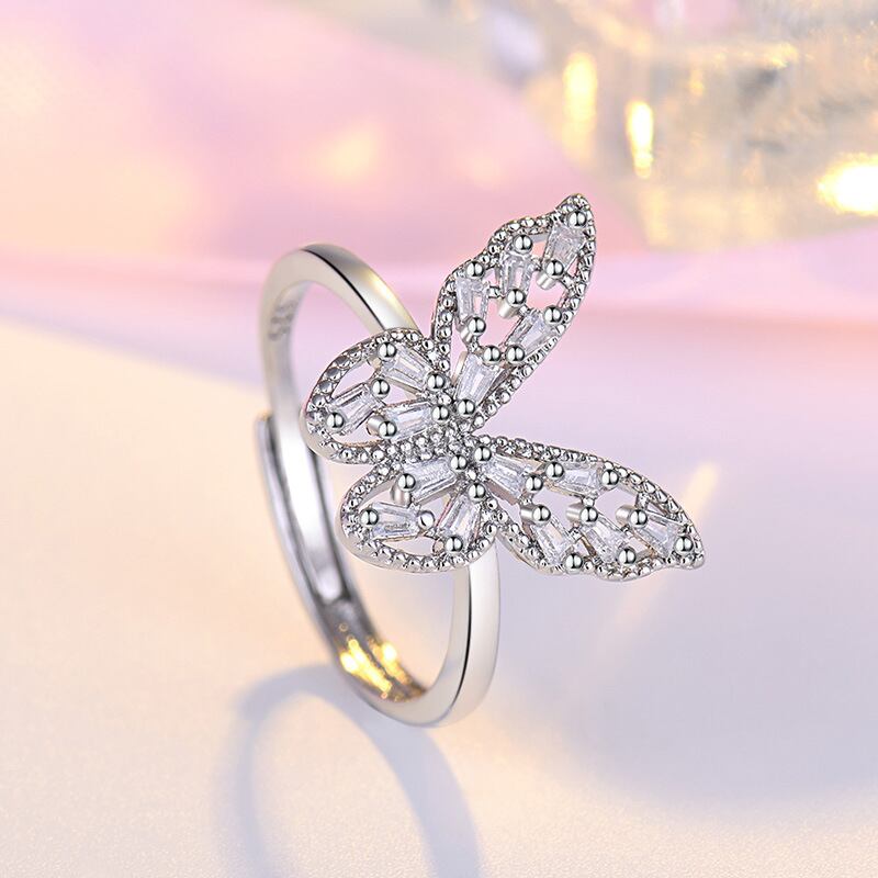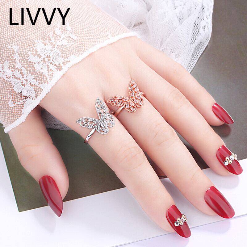 LIVVY シルバーカラークリスタル中空バタフライリングナックル指リングウェディングパーティージュエリーギフト調整可能 アジャスタブル 指輪 銀