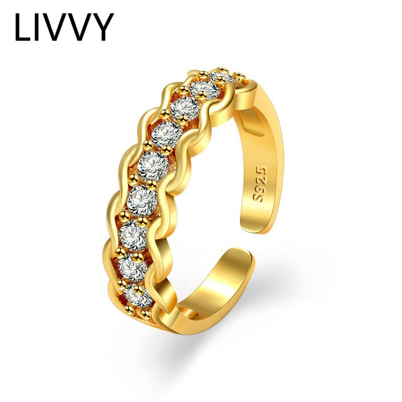 LIVVY ジルコン ウェーブ リング レディース ゴールドカラー 絶妙手作り パーティー ジュエリー 調節可能 アジャスタブル 指輪