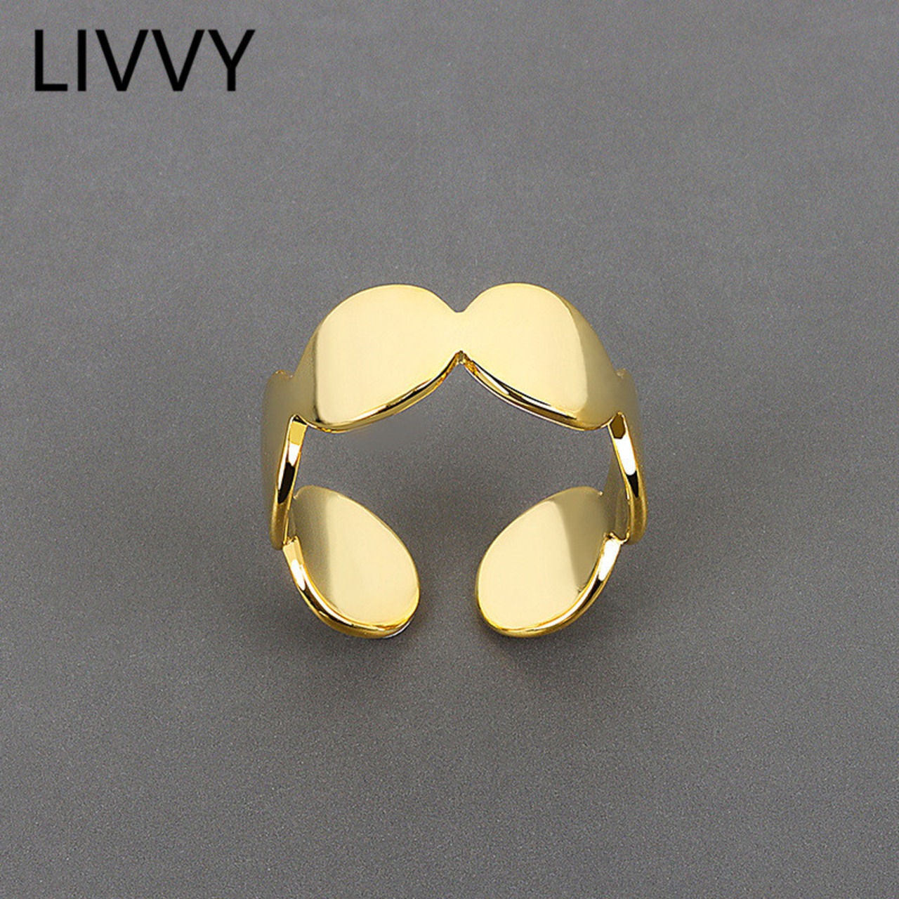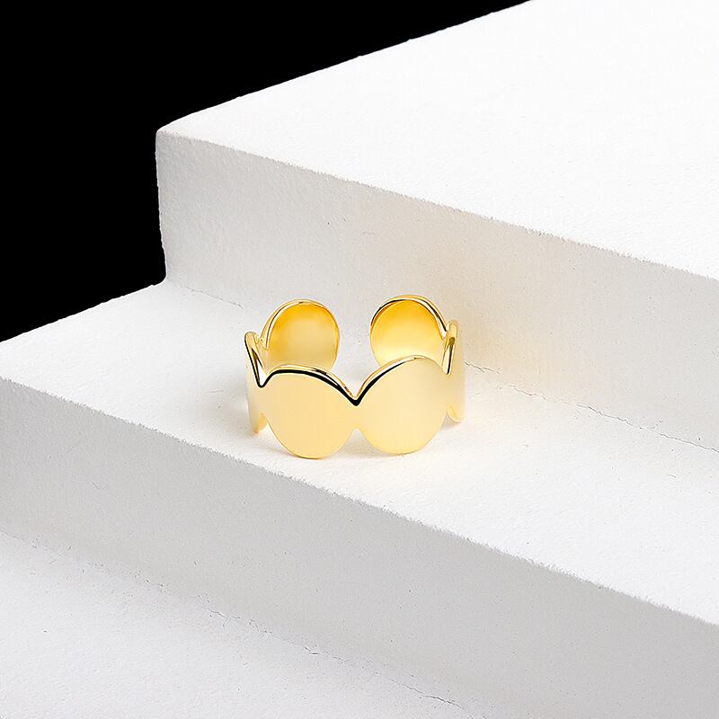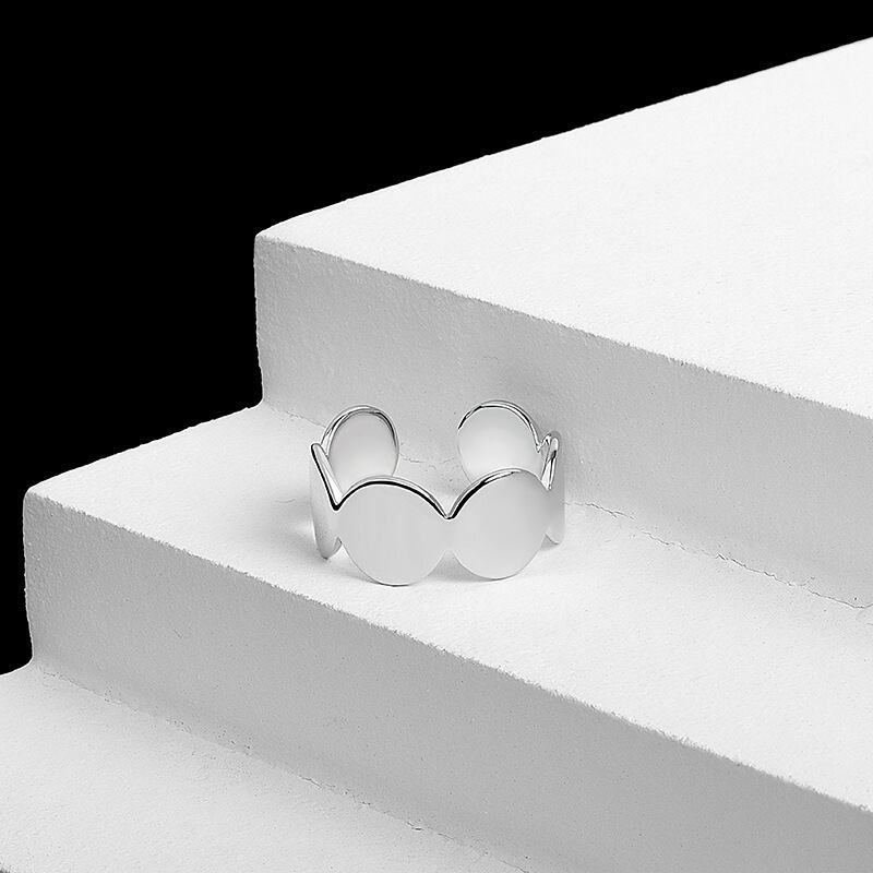 LIVVY ジオメトリック ラウンド チェーン シルバー カラー リング シンプル クリエイティブ スムース オープン ジュエリー アクセサリー 指輪 銀