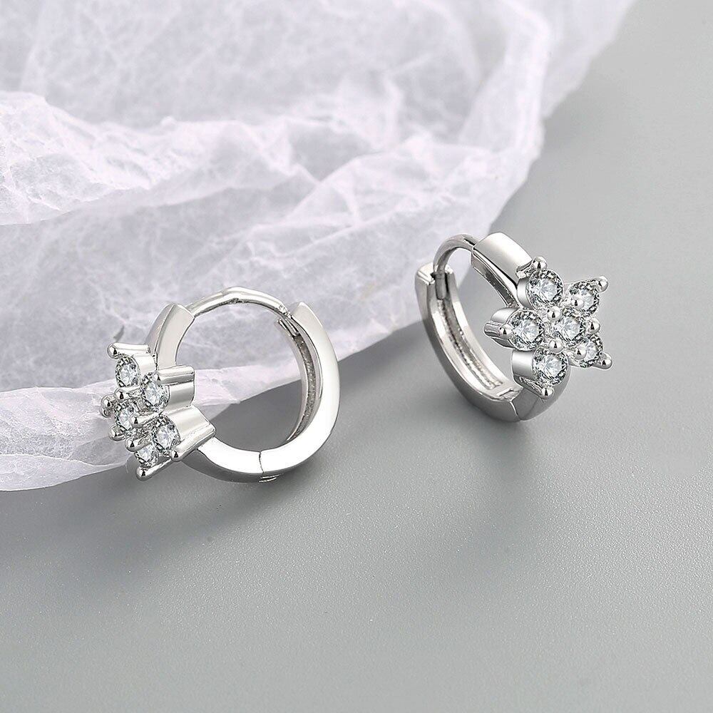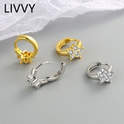 LIVVY シルバーカラートレンディクリスタルジルコンイヤリングシンプル幾何学花ウェディングジュエリー 指輪 フラワーデザイン 銀