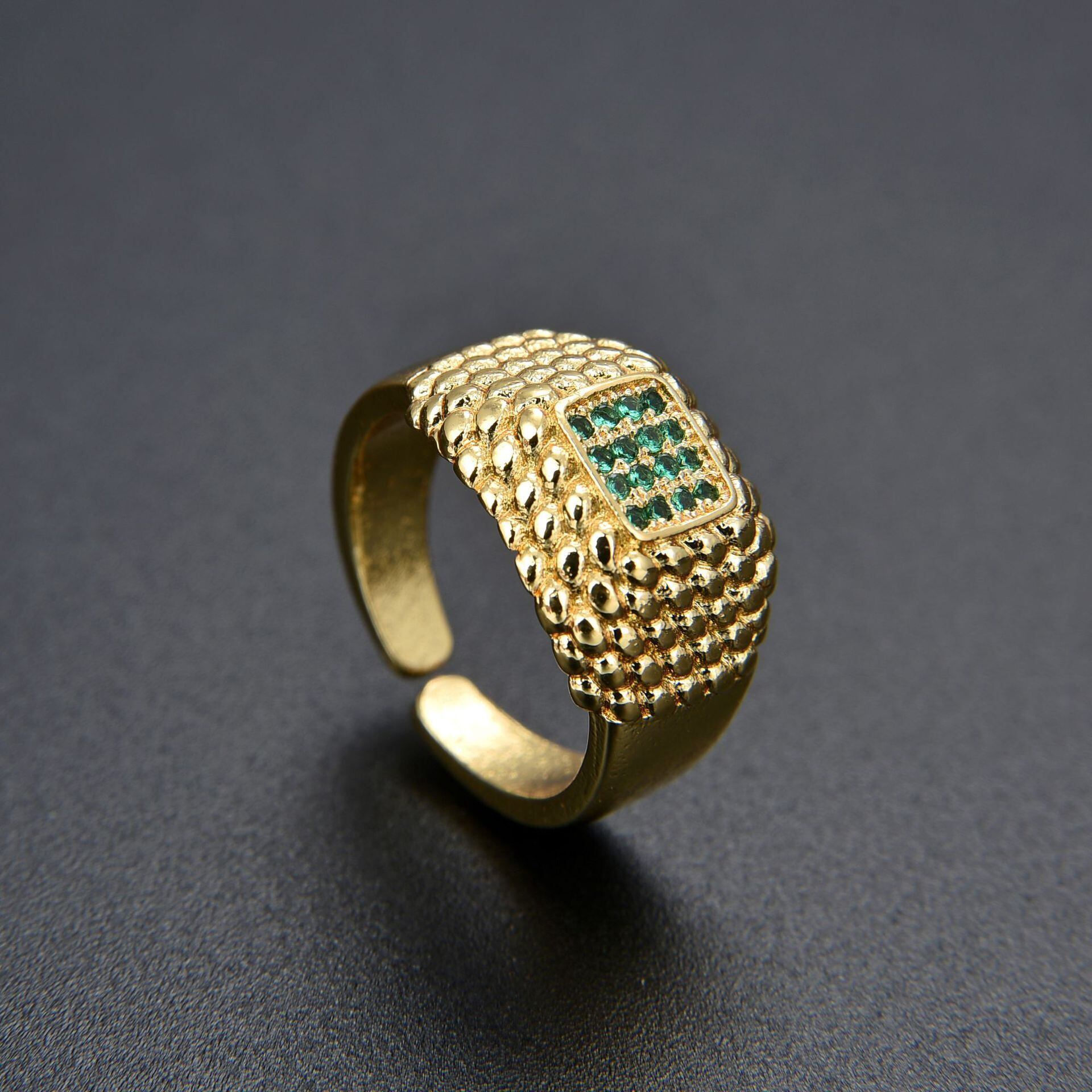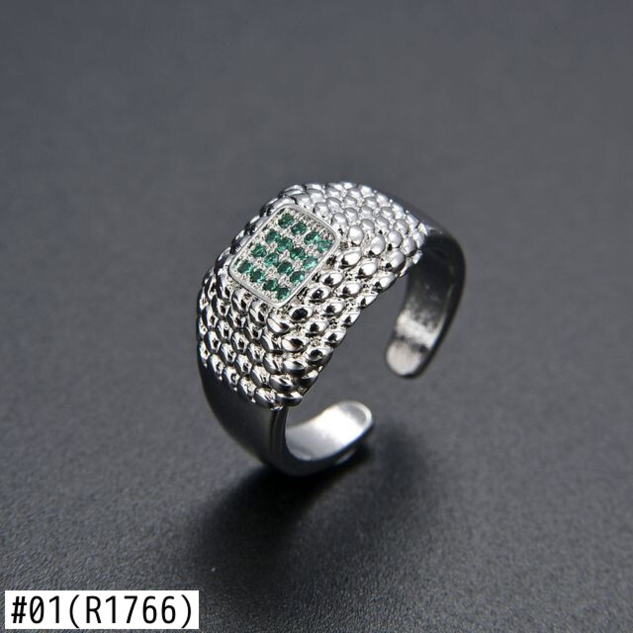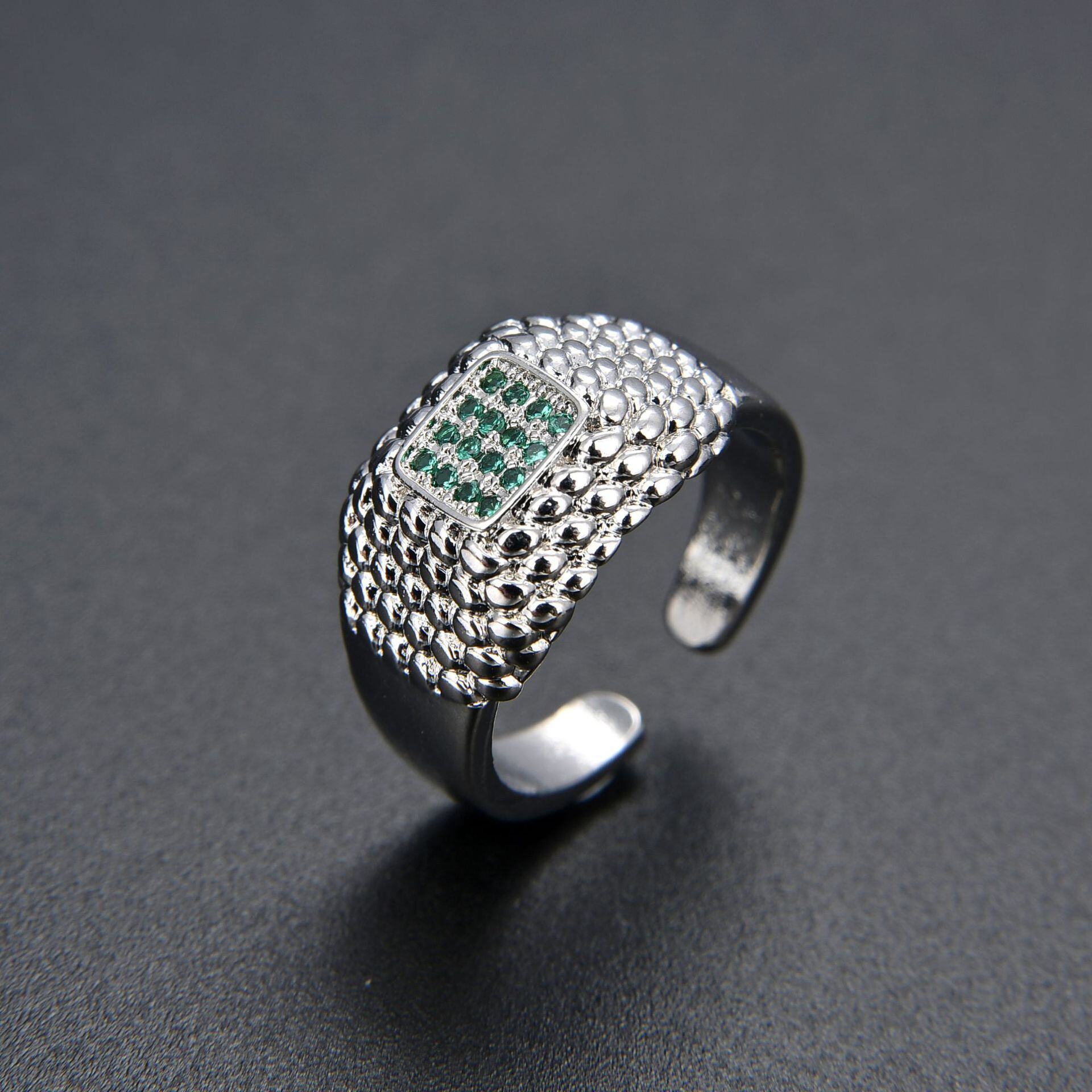 ;IVVY シルバーカラー 不規則ドット グリーン ジルコン オープン ワイド リング レディース メンズ パーティー ジュエリー ギフト 指輪 銀