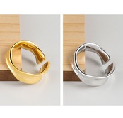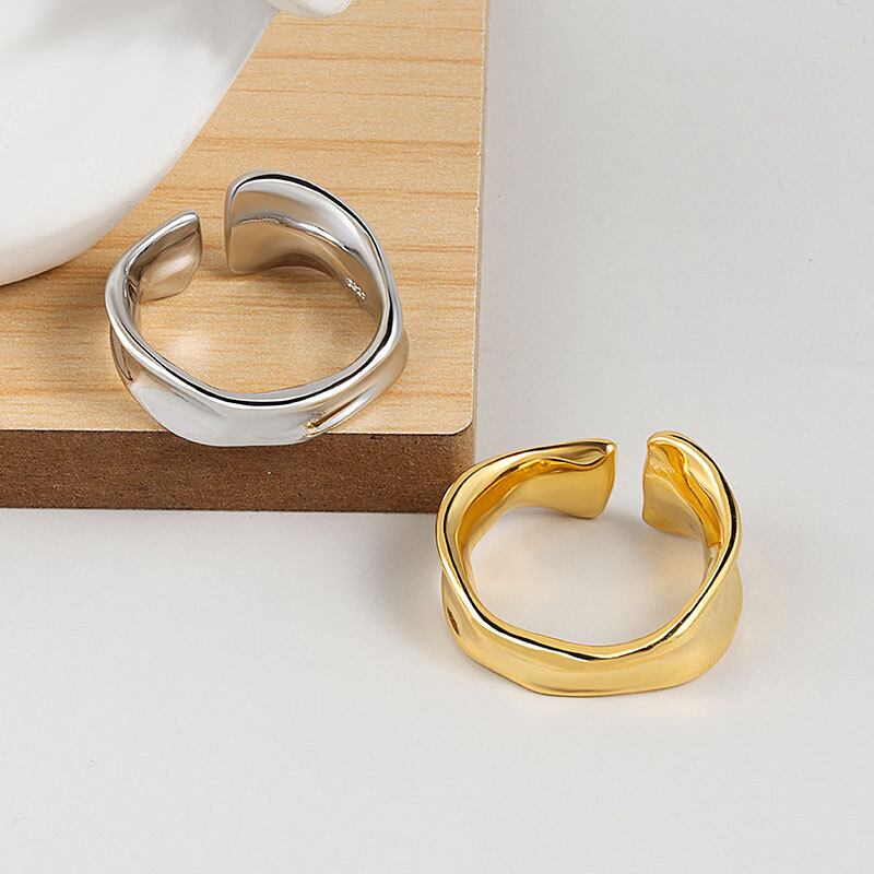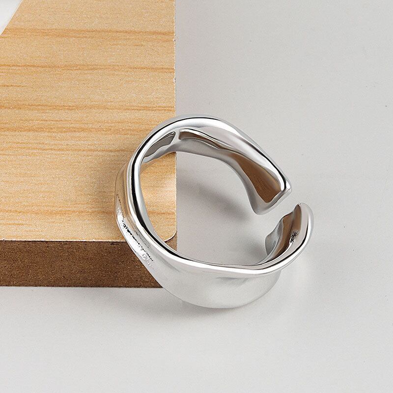 LIVVY シルバーカラー イレギュラー スムース リング 和面 開閉調節可能 シンプル フレンチチャーム パーティージュエリー アジャスタブル 指輪 銀