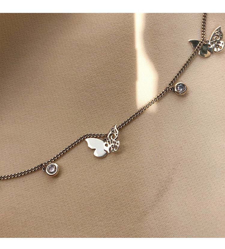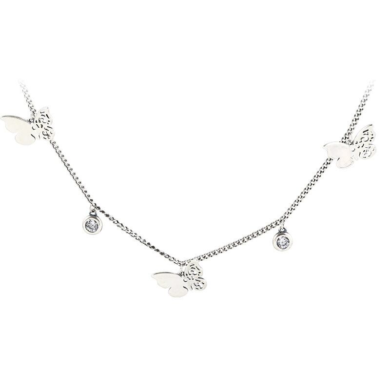 LIVVY かわいいシルバー色蝶ペンダントネックレストレンディラウンドジルコンネックレスガールズチャームジュエリーギフト レース 大人ガーリー スウィート キュート カジュアル 銀
