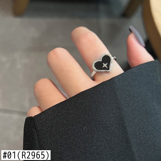 LIVVY シンプル ドリップ グルー ラブ ハート シルバー カラー リング 気質 ライト ラグジュアリー クロス オープン フィンガー リング 指輪 銀