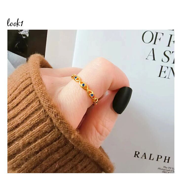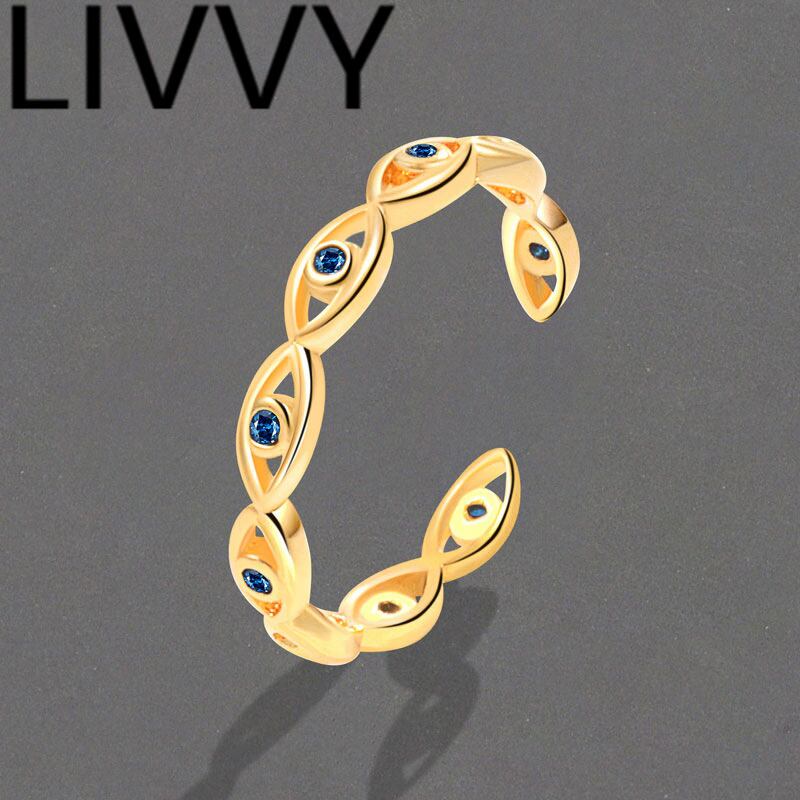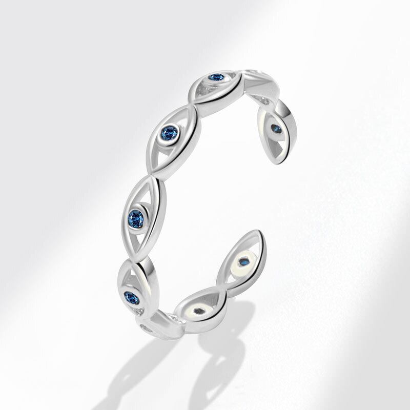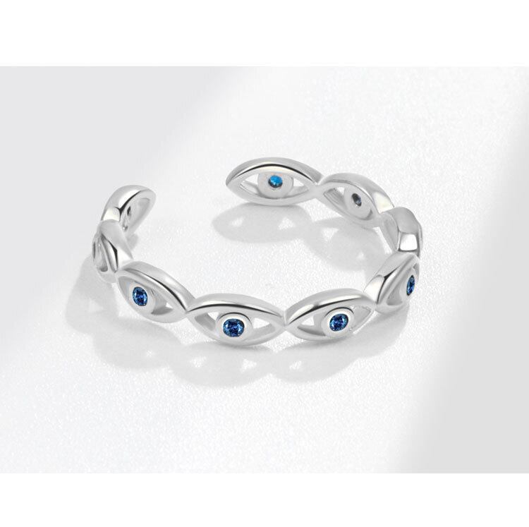LIVVY シルバーカラーパンククリエイティビティアイリングレディースメンズブルージルコン調節可能リングジュエリーギフト アジャスタブル 指輪 銀