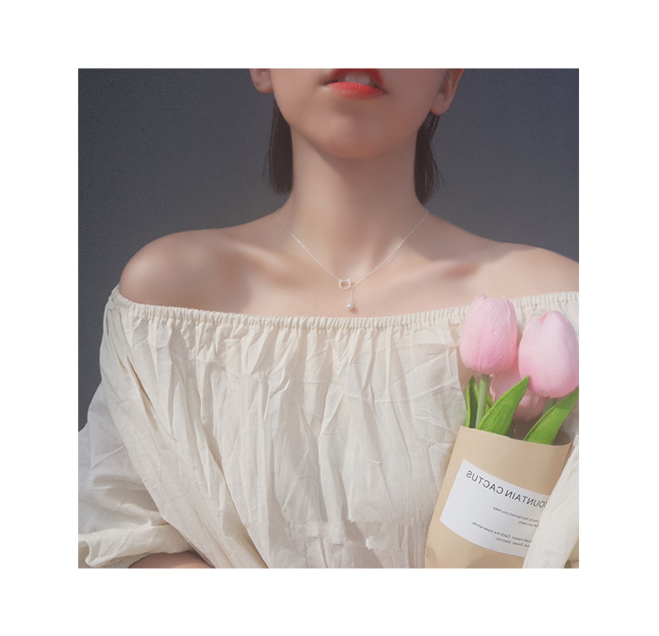 LIVVY シルバーカラー かわいい猫 ベル ペンダント ネックレス シンプル 鎖骨チェーン 気質 ギフト レース 大人ガーリー スウィート キュート カジュアル 銀