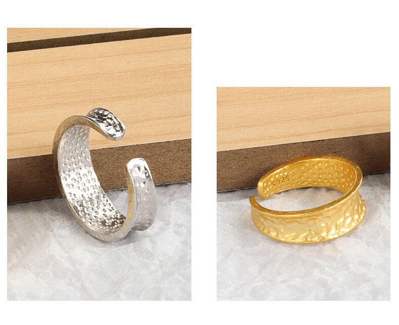 LIVVY シルバーカラー ホット 不規則 凹面 広い表面 ゴールド リング オープン フィンガーリング メンズ レディース トレンド 指輪 銀