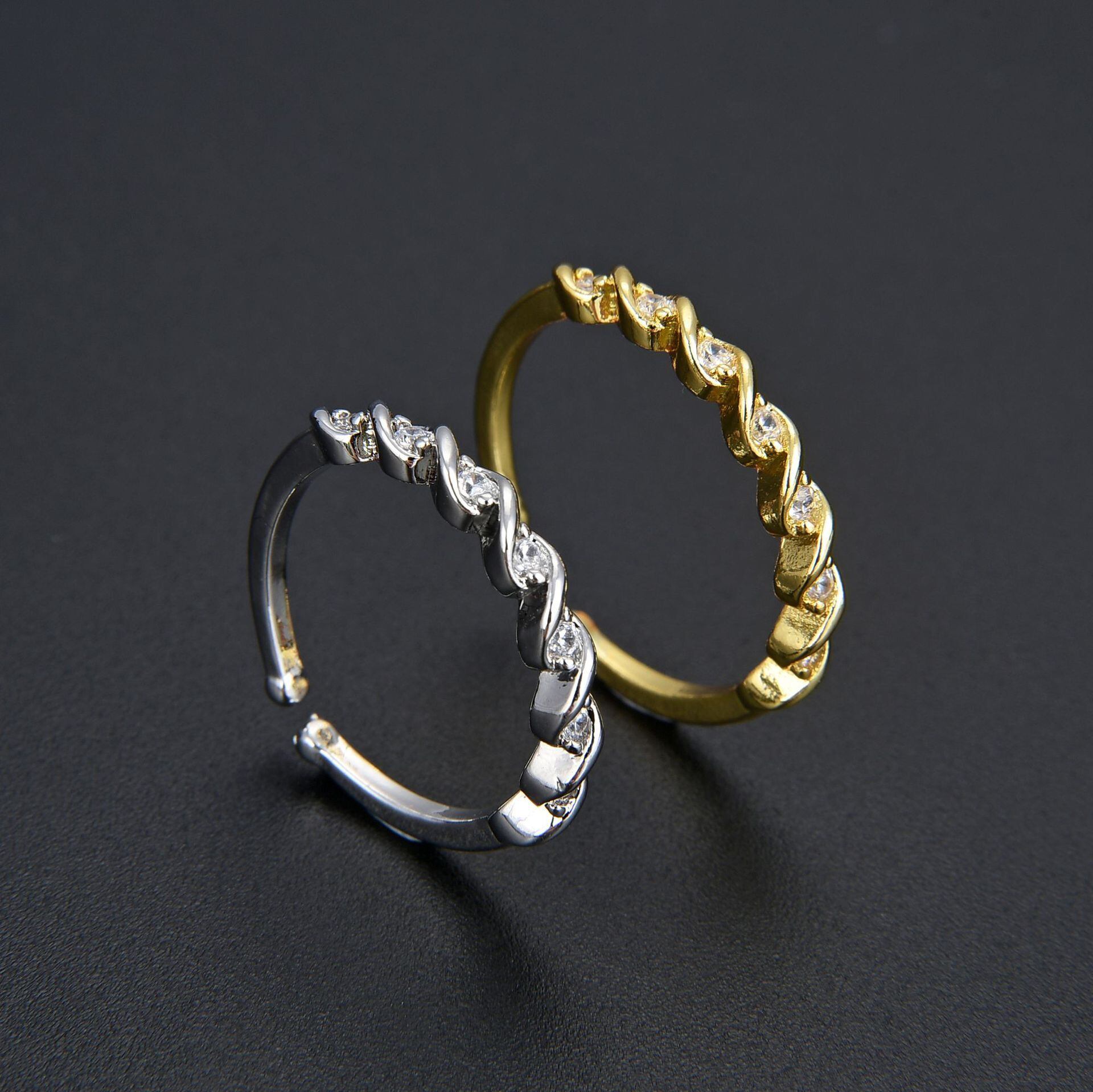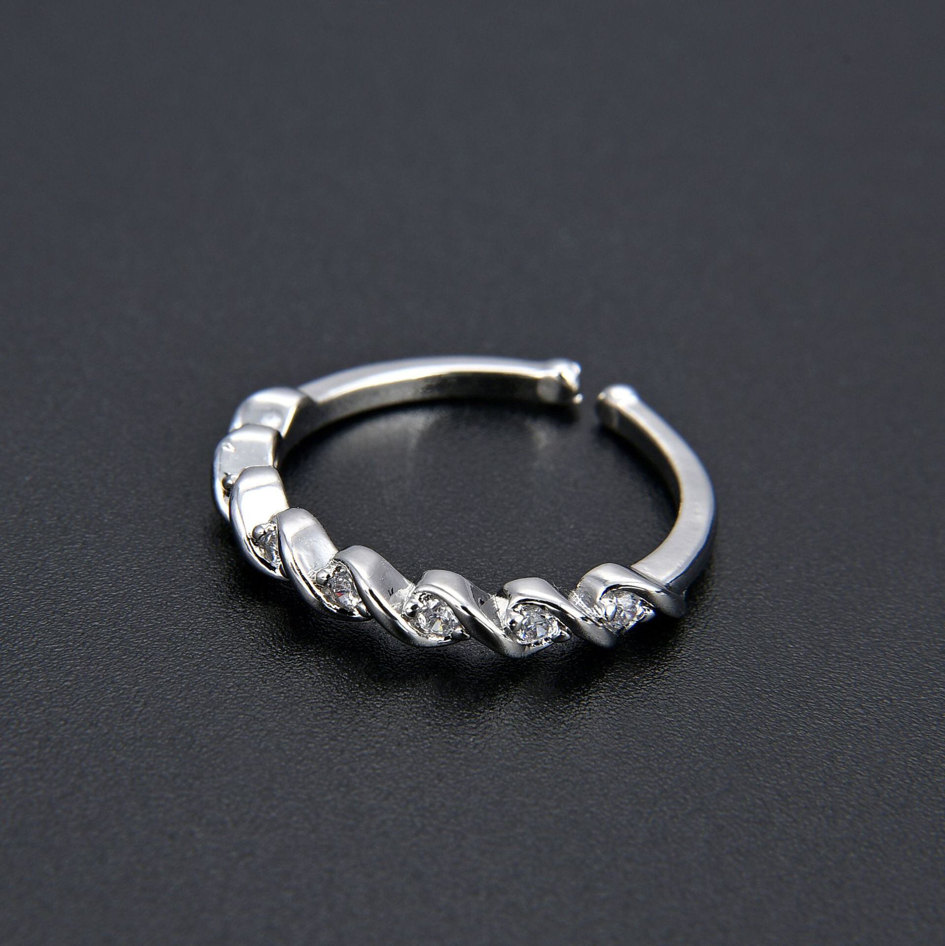LIVVY シルバーカラーホットツイストジルコンリングバレンタインデーギフト絶妙ジュエリー 指輪 銀