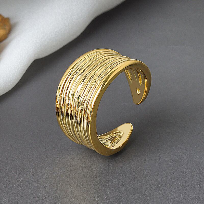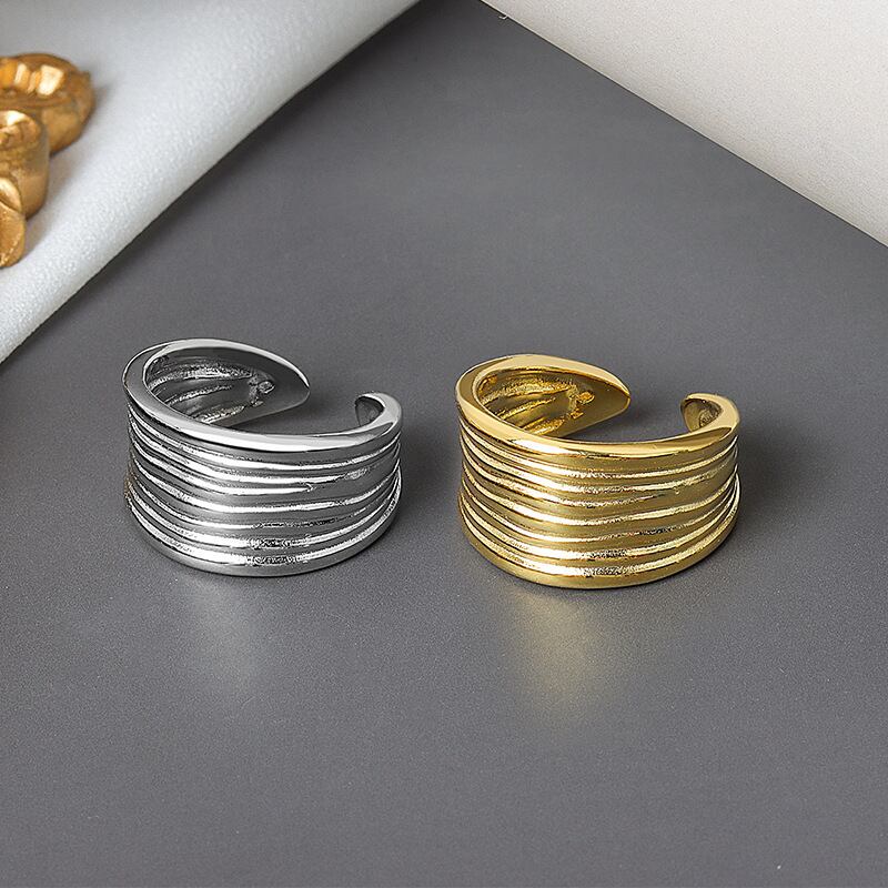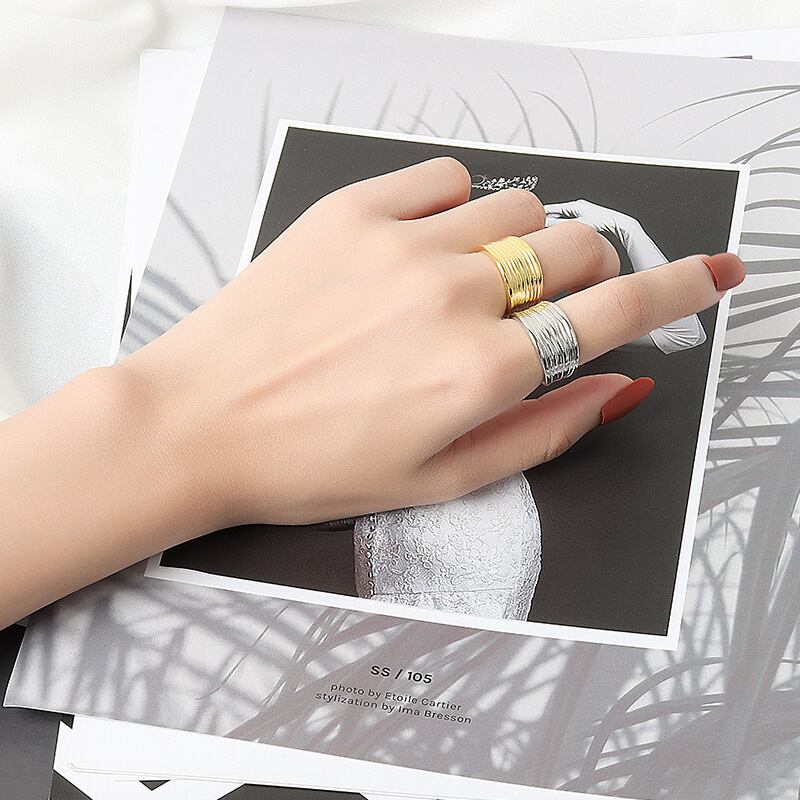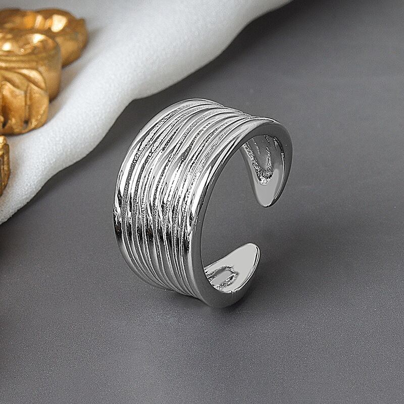 LIVVY シルバーカラーリングレイヤードシンプルスタイル多層リングギフト大チェーンリングトレンド レッド マルチレイヤー 指輪 銀