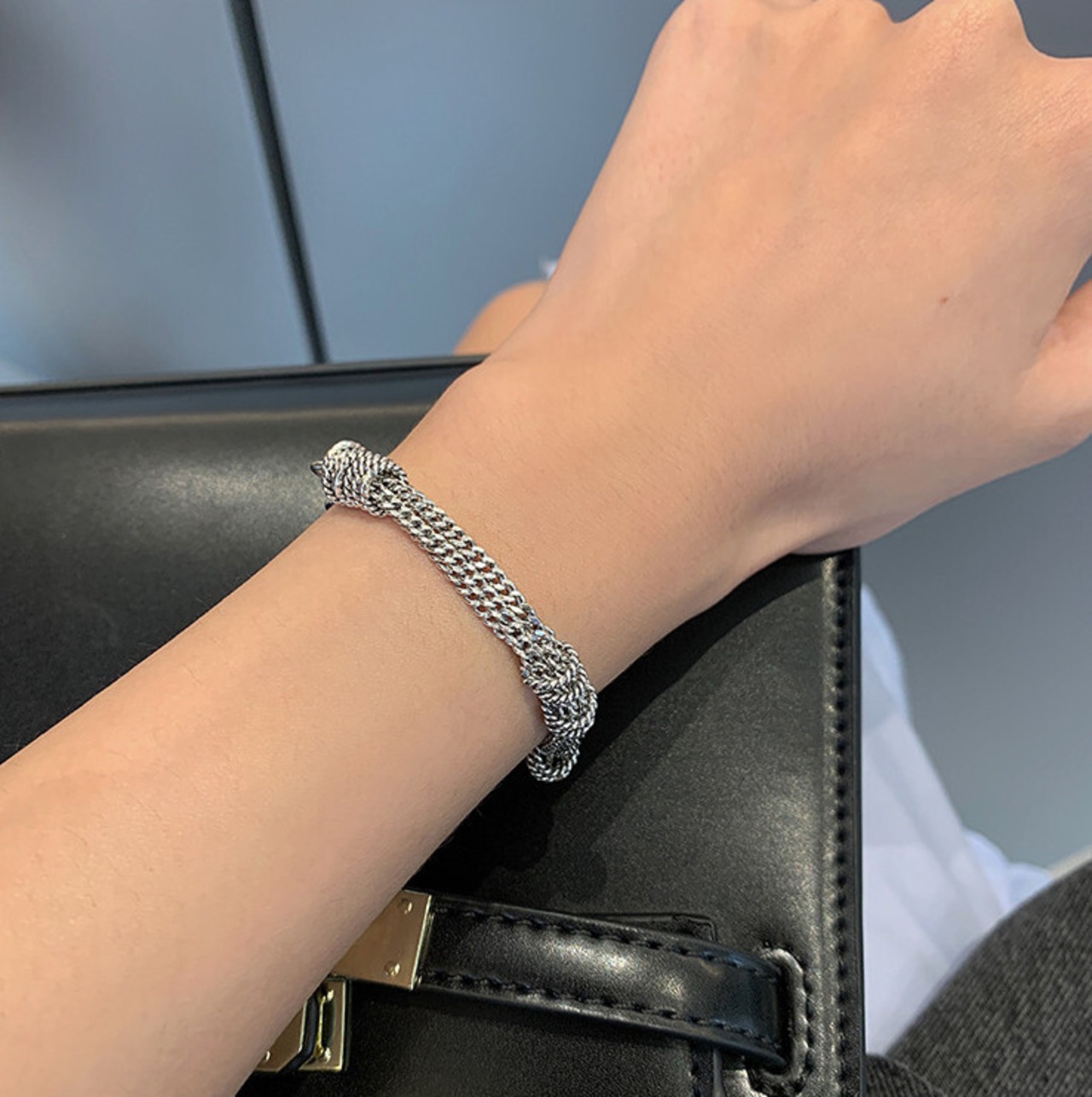 LIVVY タイシルバーカラー織りサークル多層チェーンブレスレットユニークトレンディジュエリー 銀
