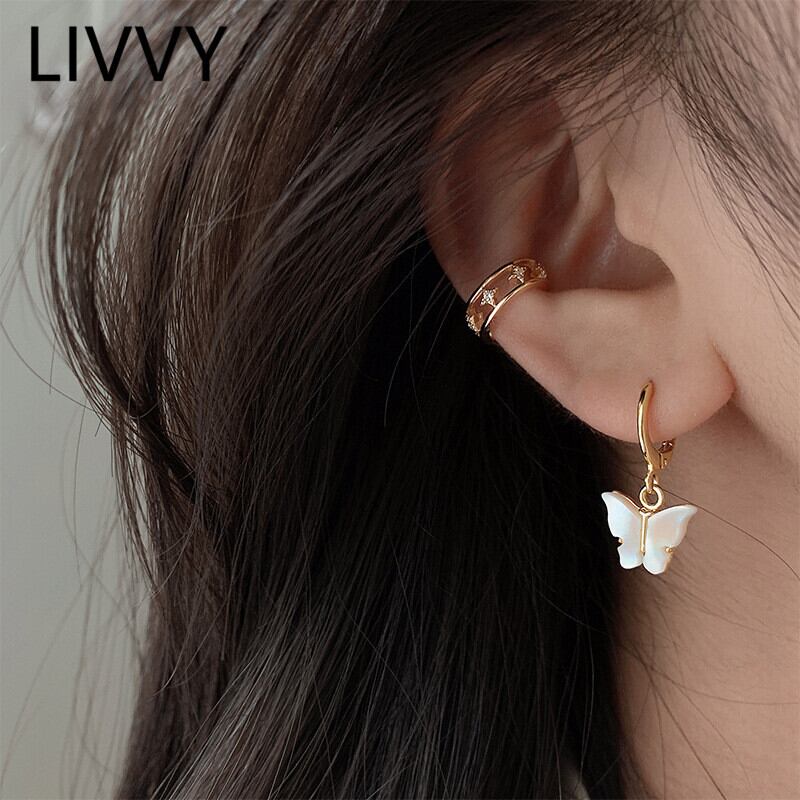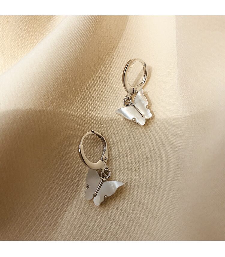 LIVVY バタフライ ペンダント シルバー カラー イヤリング シンプル - 絶妙ギフト ハンドメイド ジュエリー 指輪 銀