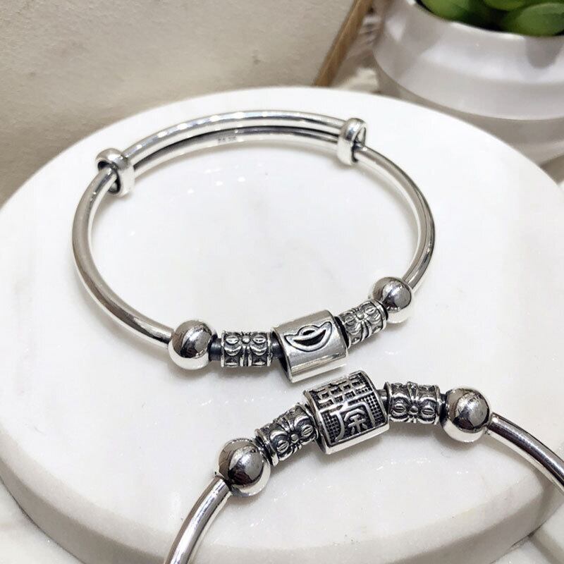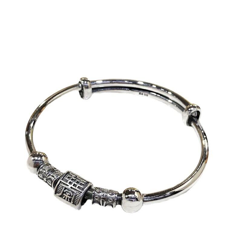LIVVY タイシルバーカラーレトロシリンダービーズ調節可能ブレスレットユニセックスハンドジュエリートレンディアクセサリーギフト アジャスタブル 銀