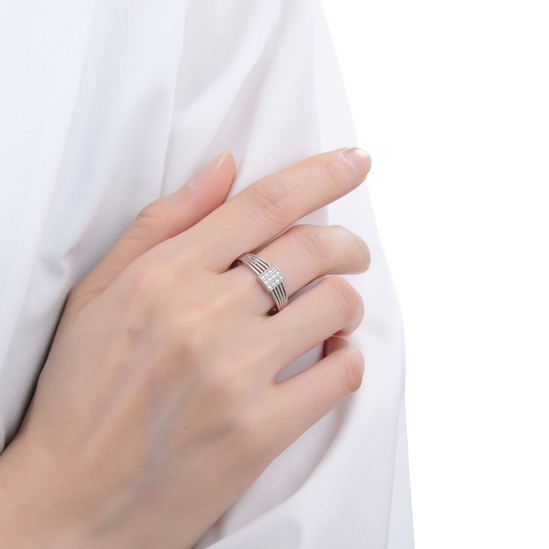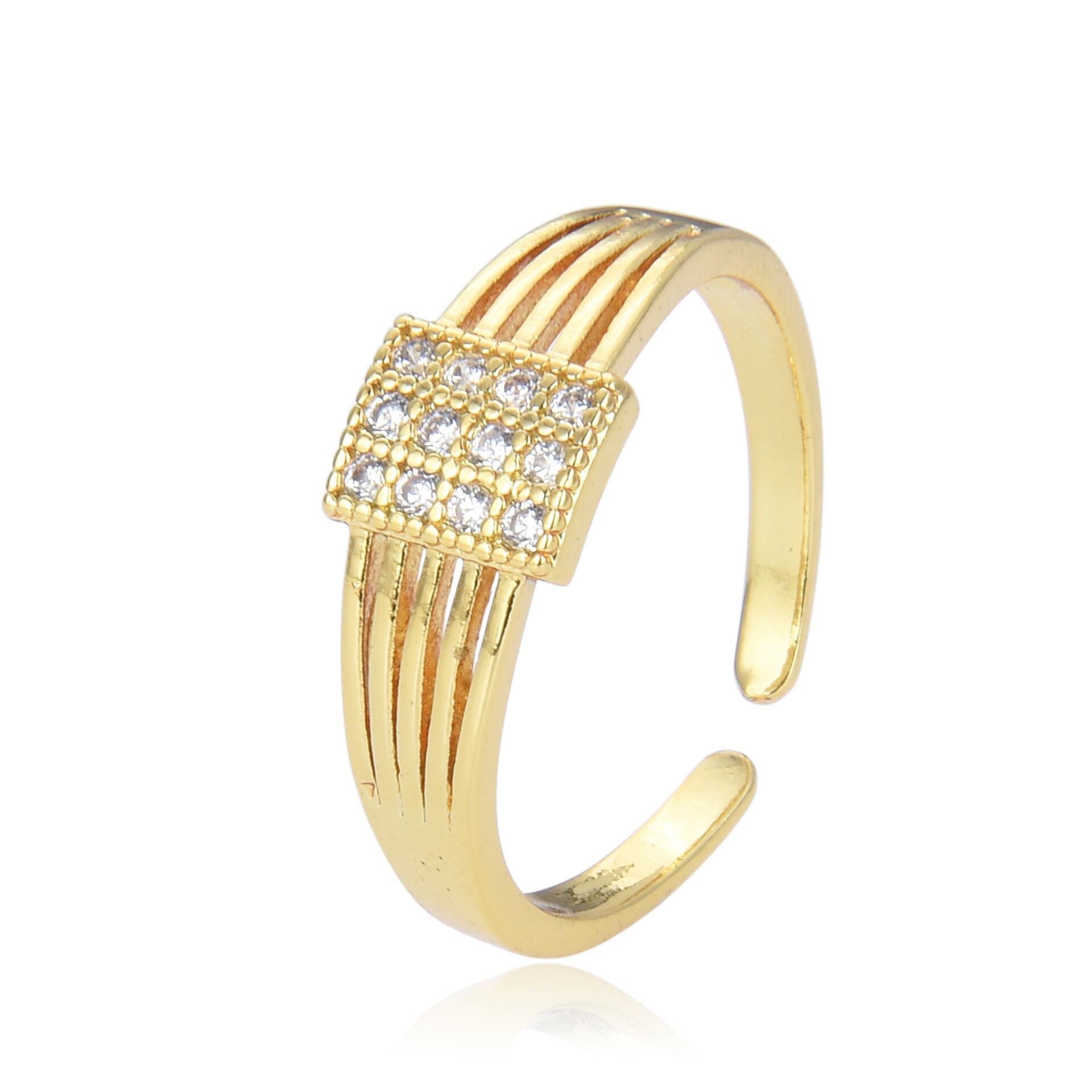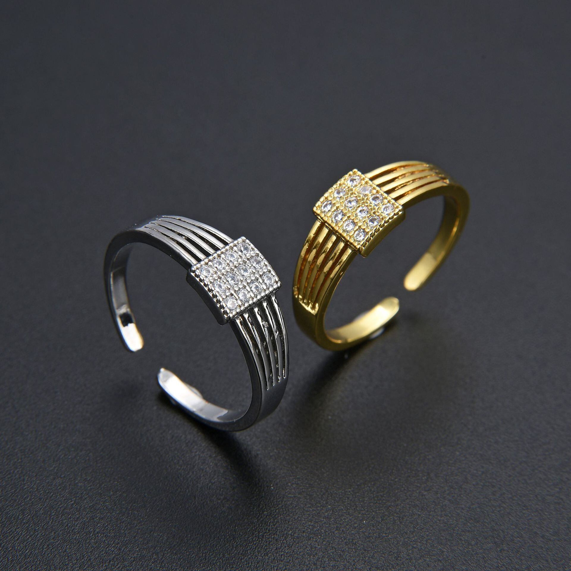 LIVVY シルバーカラーレトロシンプル正方形象嵌ジルコン調節可能リングトレンドクリエイティブパーティーファインジュエリー アジャスタブル 指輪 銀 スクウェア