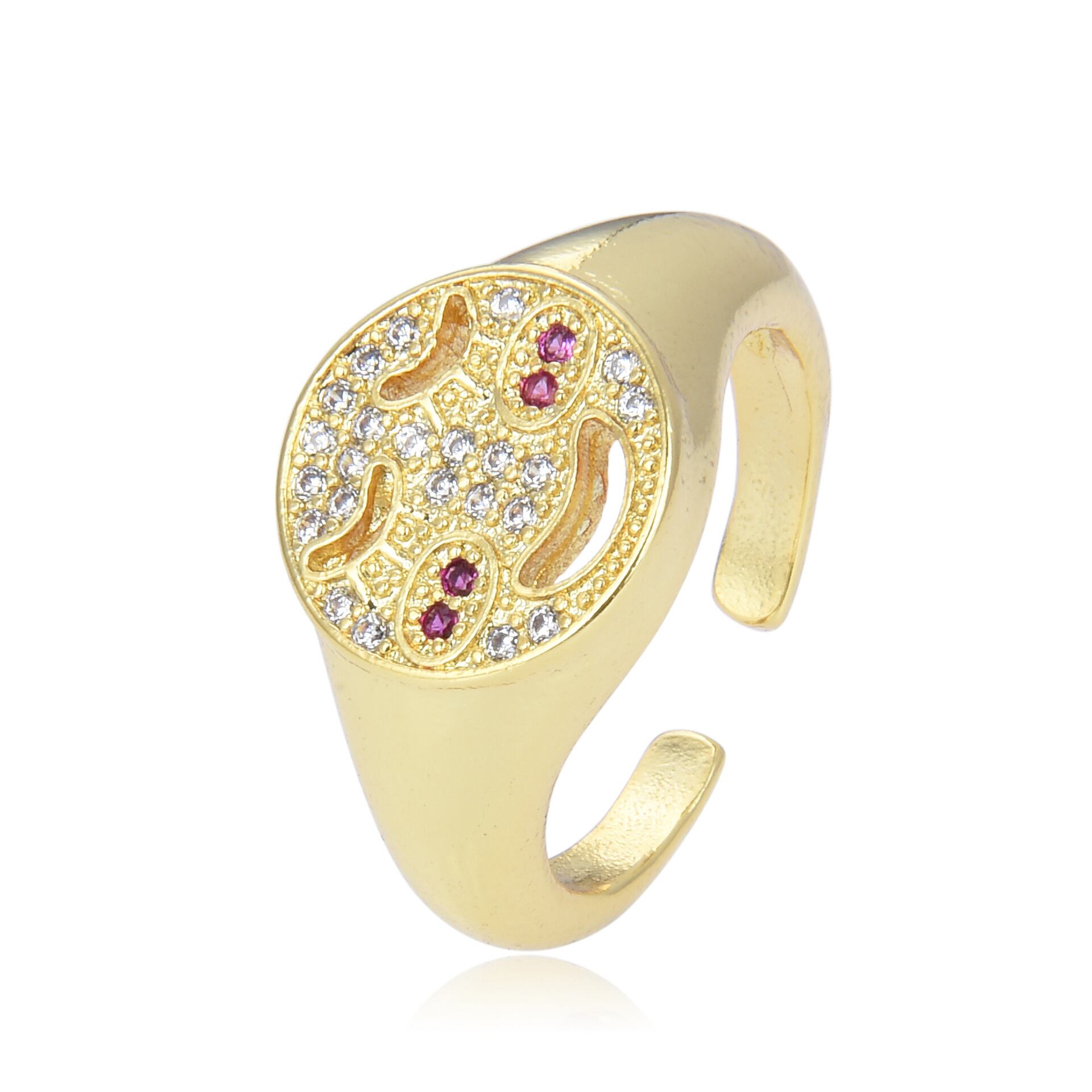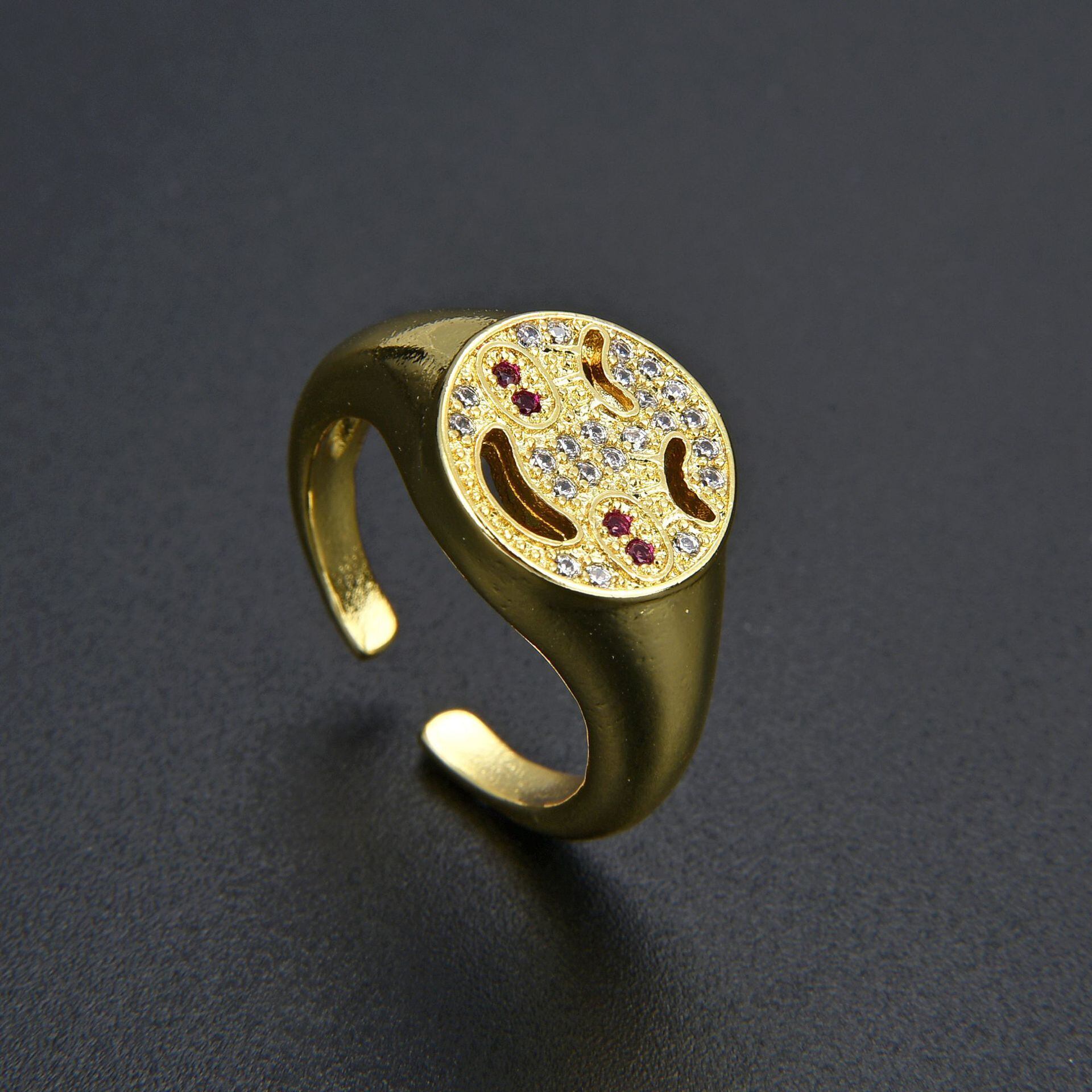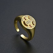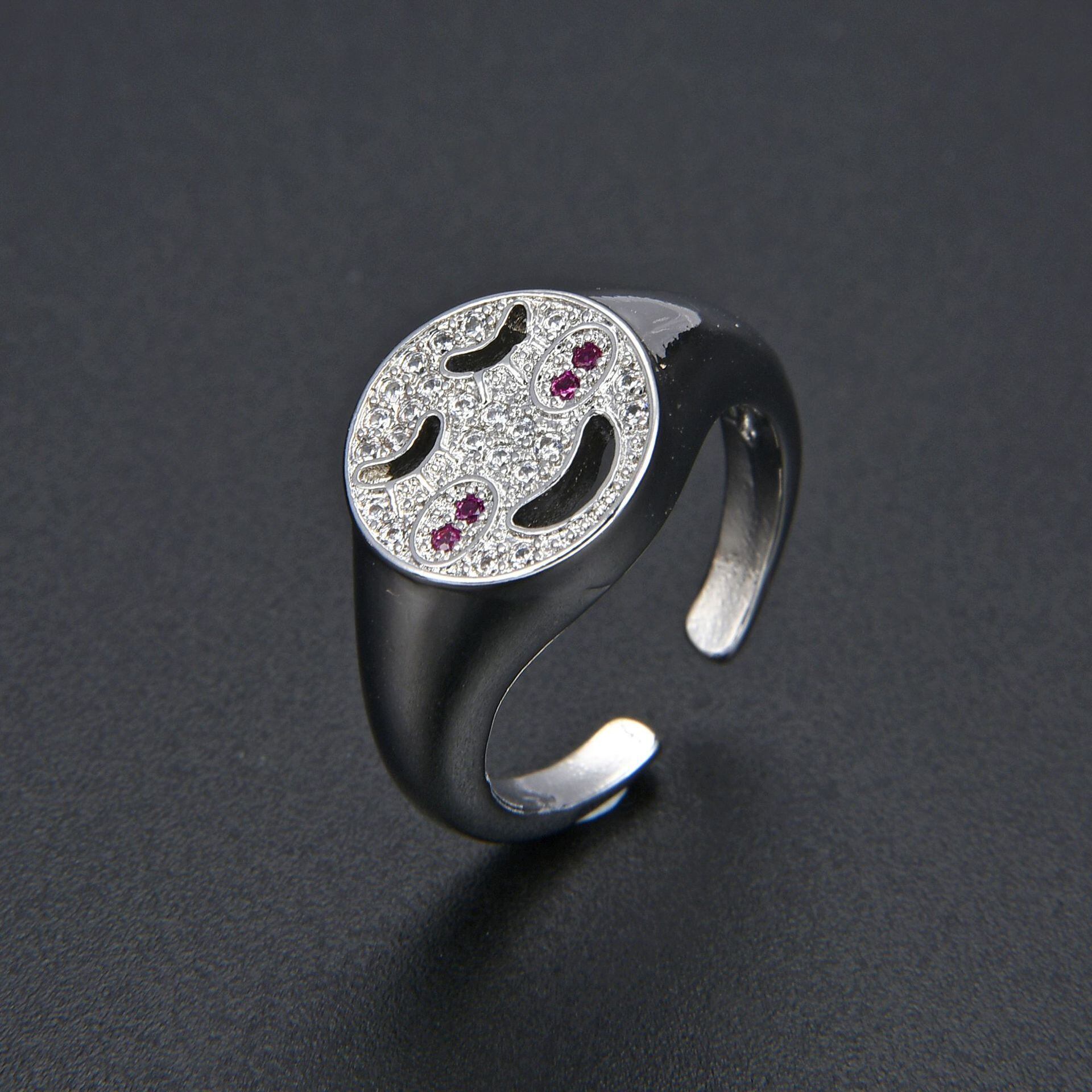 LIVVY シルバーカラートレンディメタルキュービックジルコニアスマイリーフェイスかわいいリングシンプルパンクスタイルパーティージュエリー 大人ガーリー スウィート キュート カジュアル 指輪 銀 風信子石