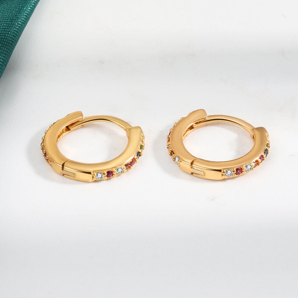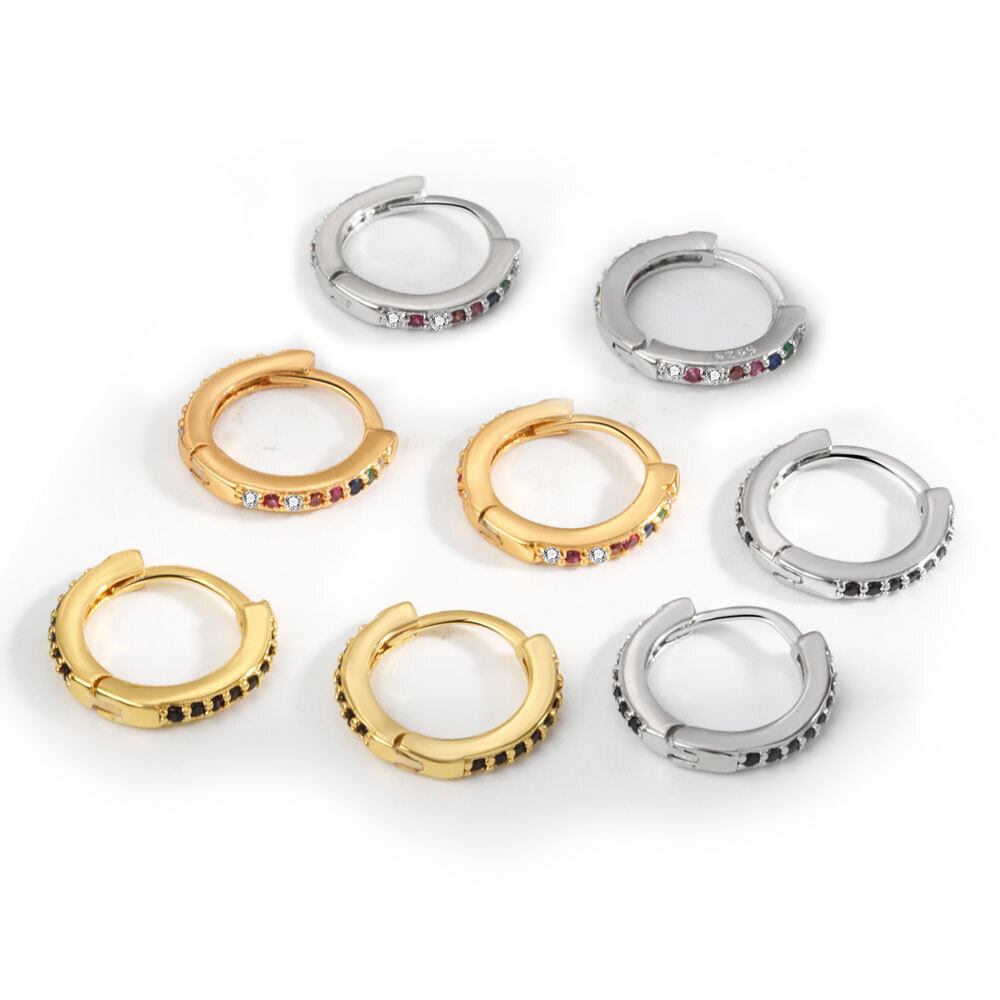 LIVVY シルバーカラーラウンド象嵌カラージルコンイヤリングシンプル気質ジュエリー レッド 指輪 銀