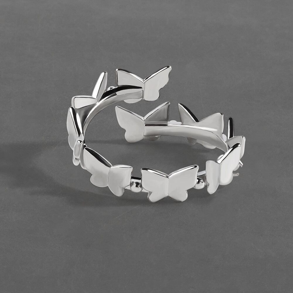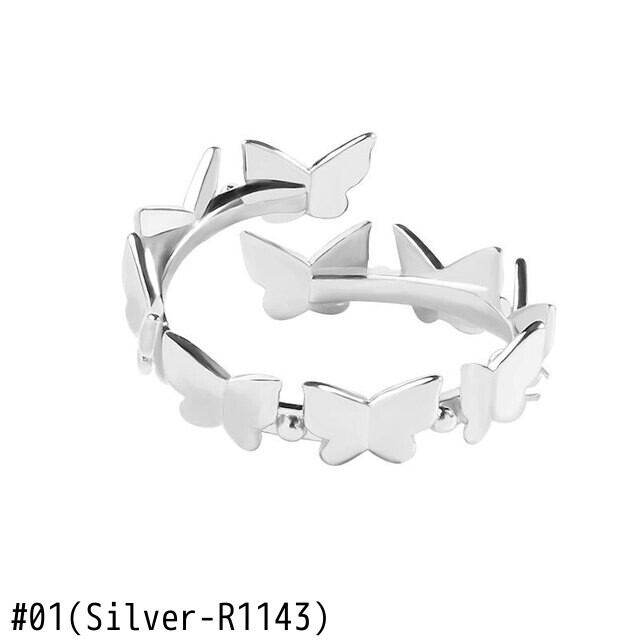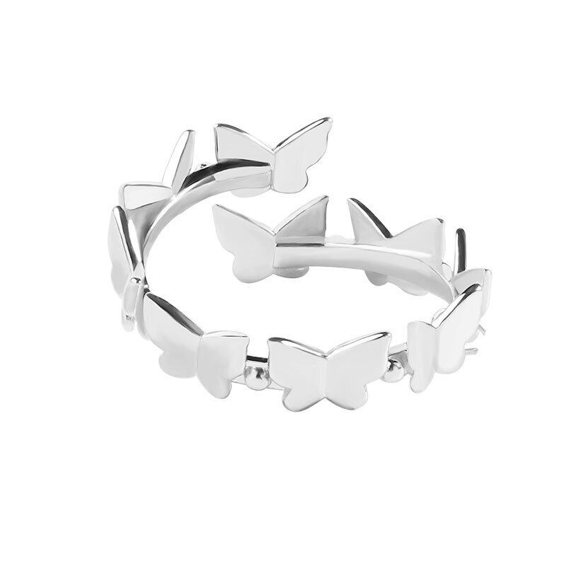 LIVVY シルバーカラー滑らか表面蝶リングカップルトレンディクリエイティブ手作りパーティーアクセサリー 指輪 銀