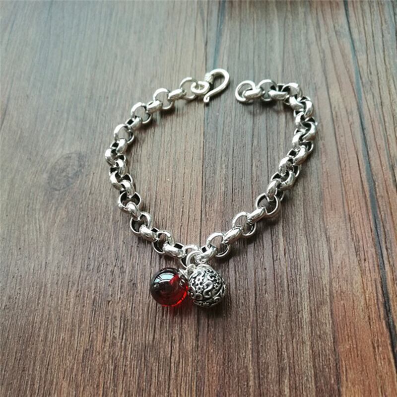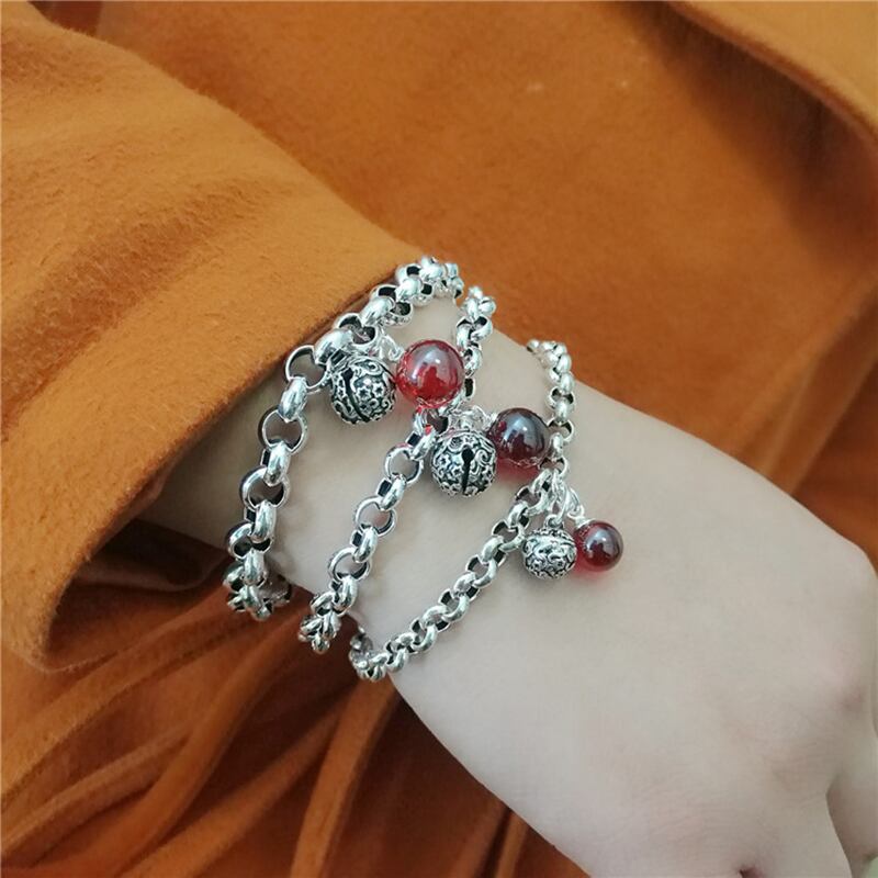 タイシルバーカラー小さベルレッドストーンチャームブレスレットレディースメンズエンドトレンドジュエリーバングルパーティー 銀