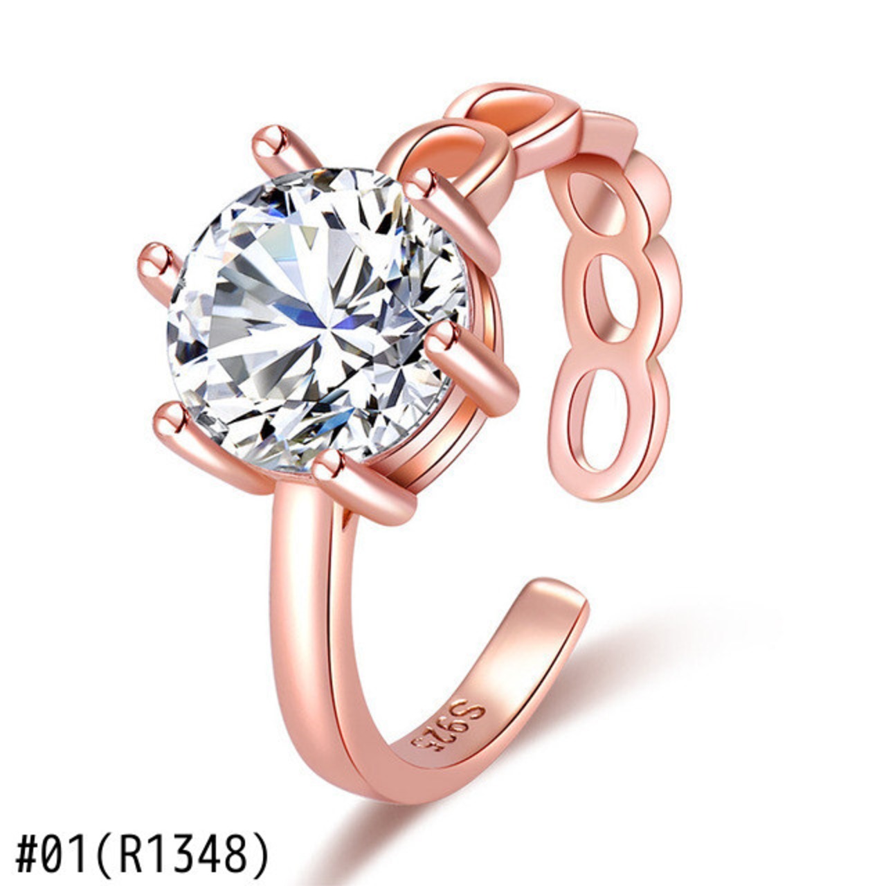 LIVVY シルバーカラートレンディクリスタルジルコン婚約調節可能リングウェディングジュエリー アジャスタブル 指輪 銀