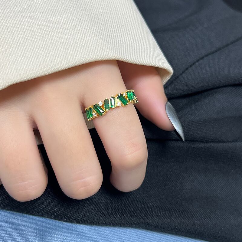 LIVVY スタイルゴールドカラー不規則グリーンジルコンリングレトロ幾何花嫁ジュエリーアクセサリー 指輪