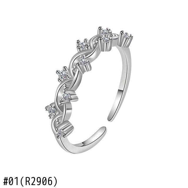 LIVVY シルバーカラー不規則シンプルジルコンリング気質オープンリング絶妙アクセサリー 指輪 銀