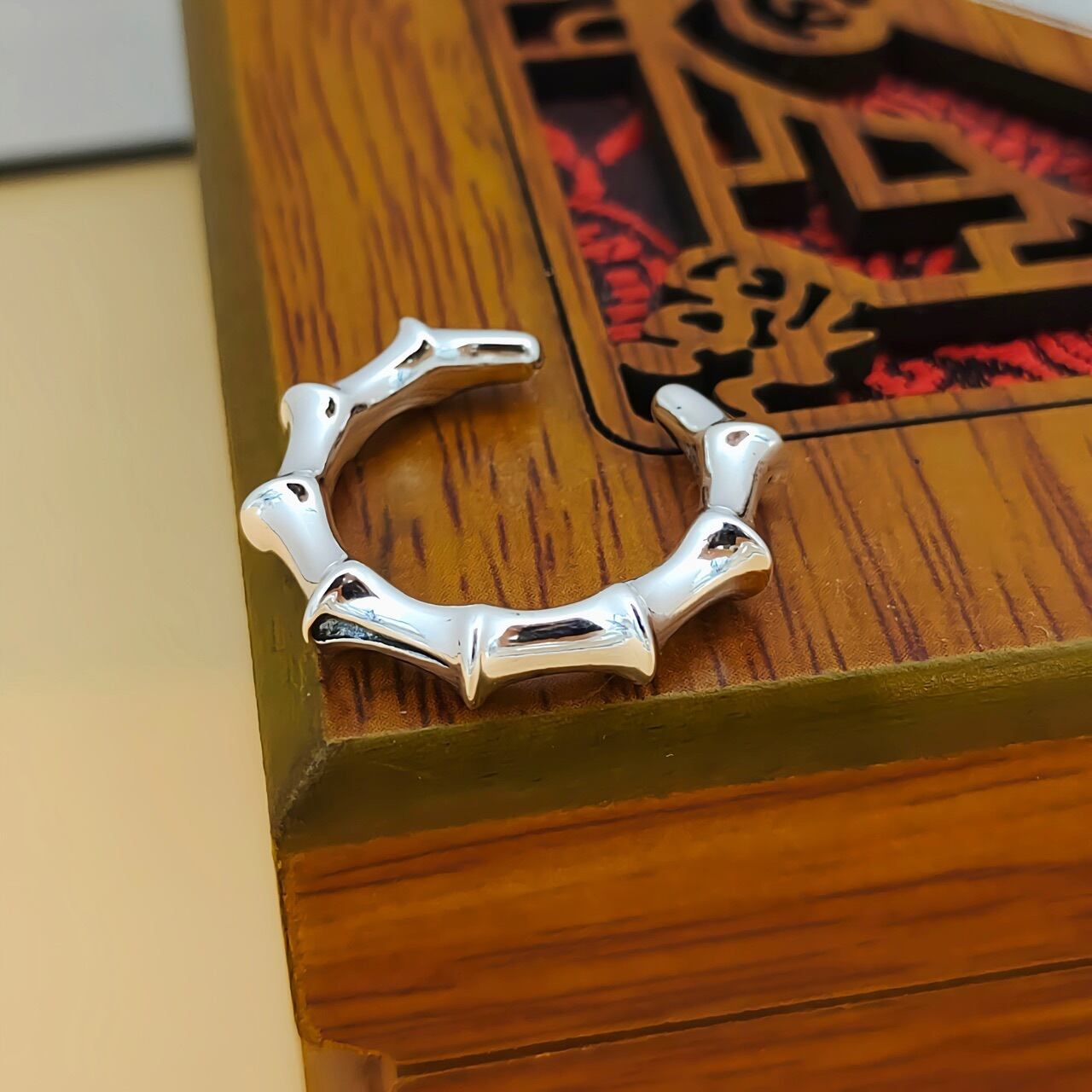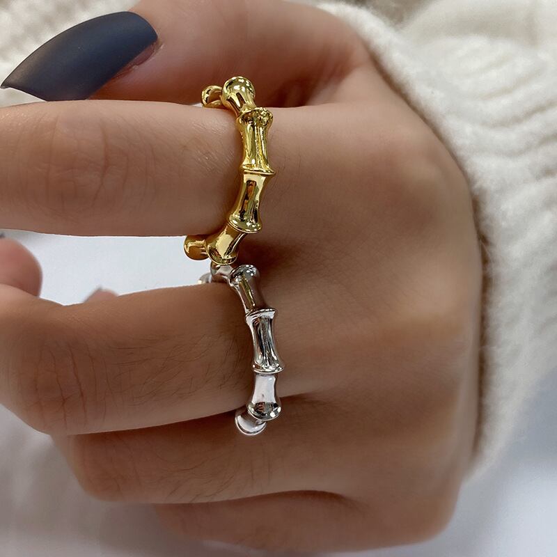 LIVVY INS シルバーカラー指輪クリエイティブシンプル竹幾何学手作りパーティージュエリーギフト リング 銀