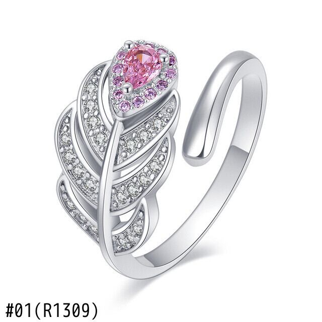 LIVVY シルバーカラークリスタルジルコンフェザー調節可能リングファインジュエリーパーティーアクセサリー アジャスタブル 指輪 銀