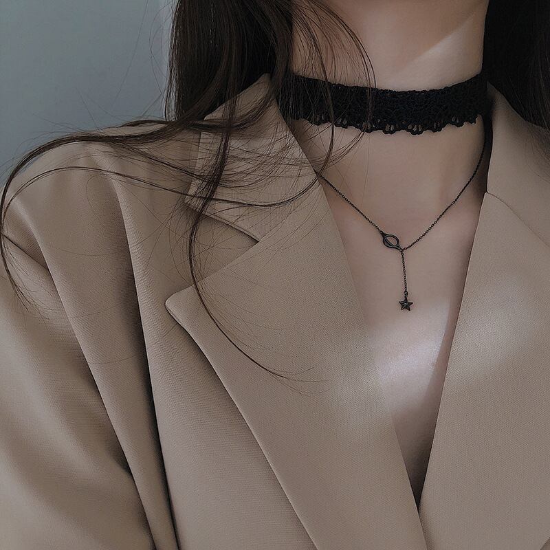 LIVVY クリエイティブ ブラック スター ネックレス シンプル トレンド 鎖骨チェーン & ガールズ パーティー ギフト ネック アクセサリー レース