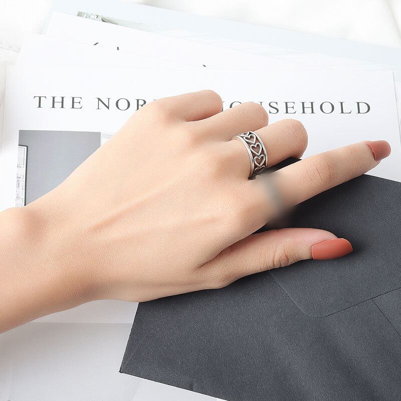 LIVVY シルバーカラーラブハート中空接続リング気質フレンチライト高級ジュエリー 指輪 銀