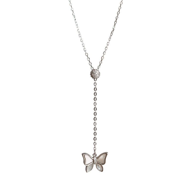 LIVVY シルバーカラー Tel バタフライネックレス鎖骨チェーンパーティージュエリーギフト レース 銀
