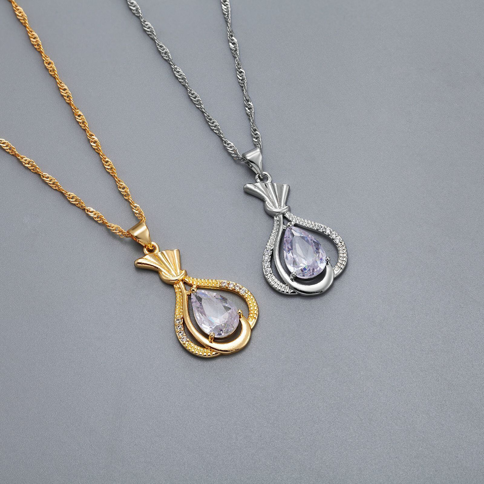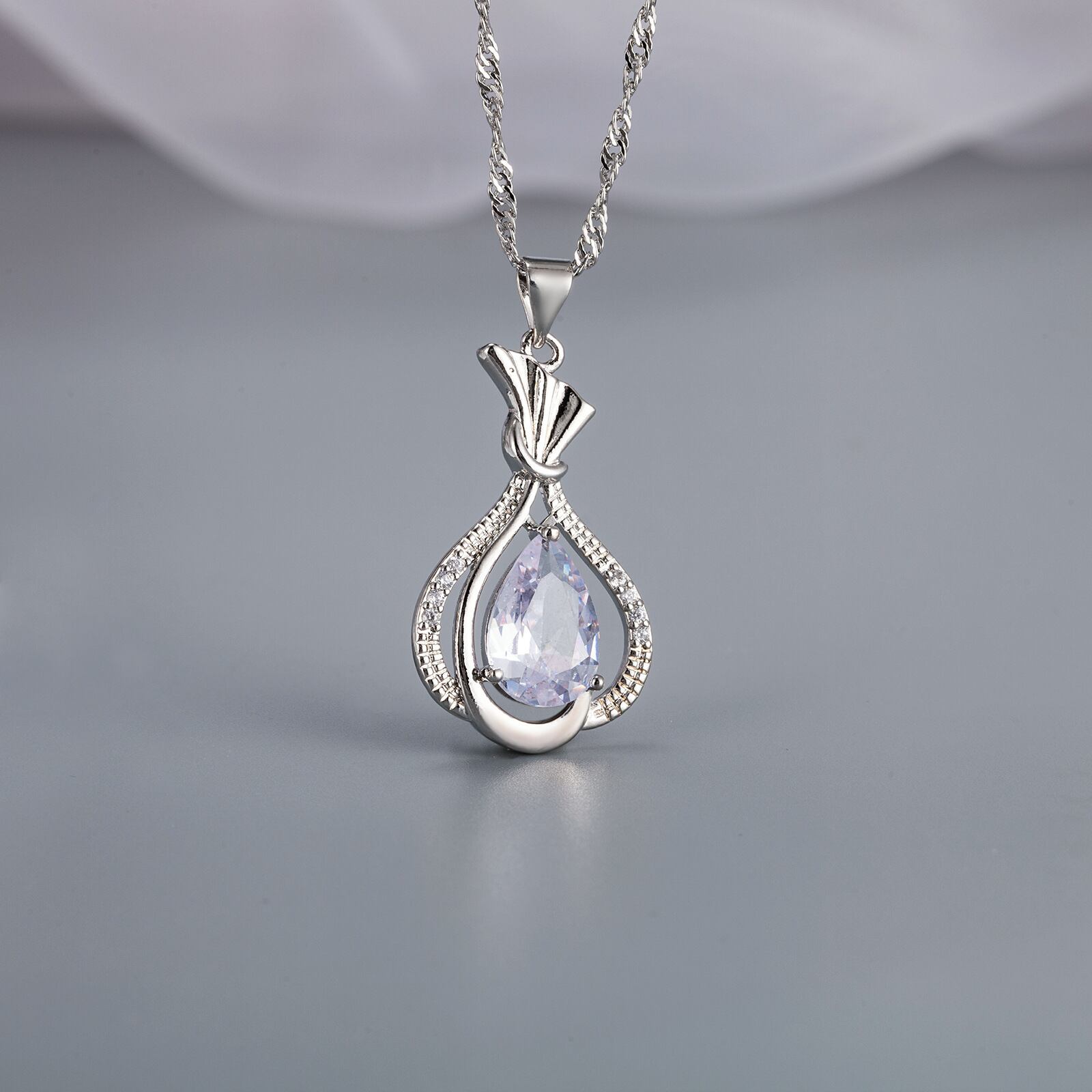 LIVVY トレンディシルバーカラー水ジルコンクリスタルネックレスシンプルアクセサリーギフトウェディングジュエリー レース 銀