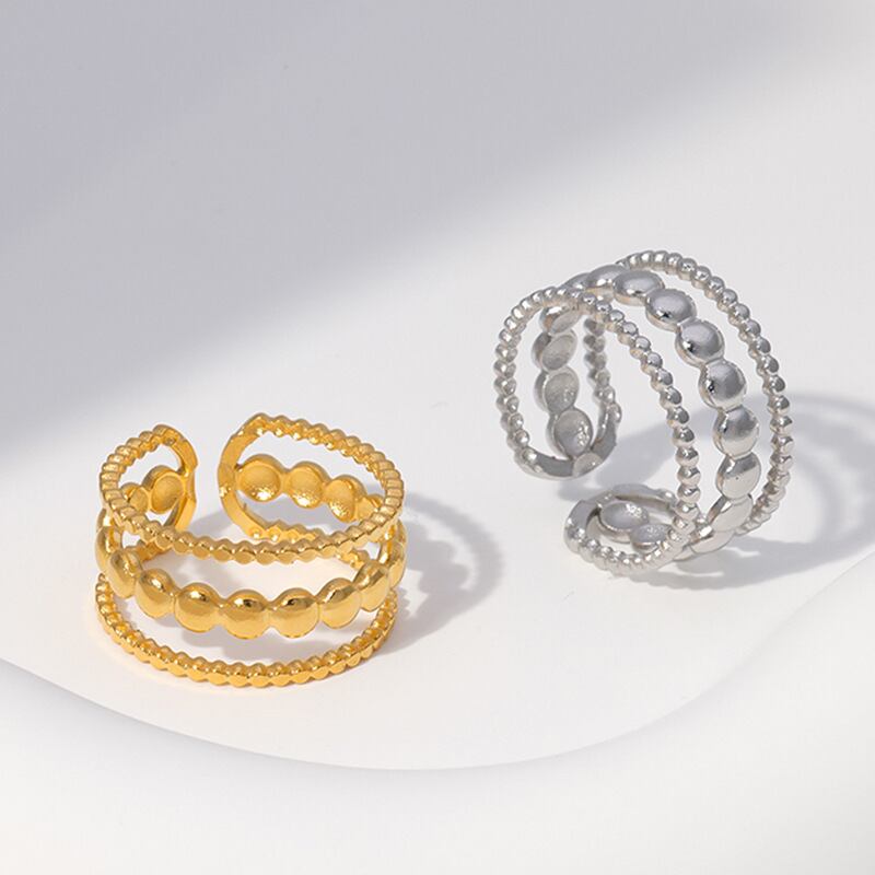 LIVVY ミニマリストパンクシルバーカラーワイドリングトレンディ多層幾何学パーティージュエリーギフト マルチレイヤー 指輪 銀