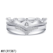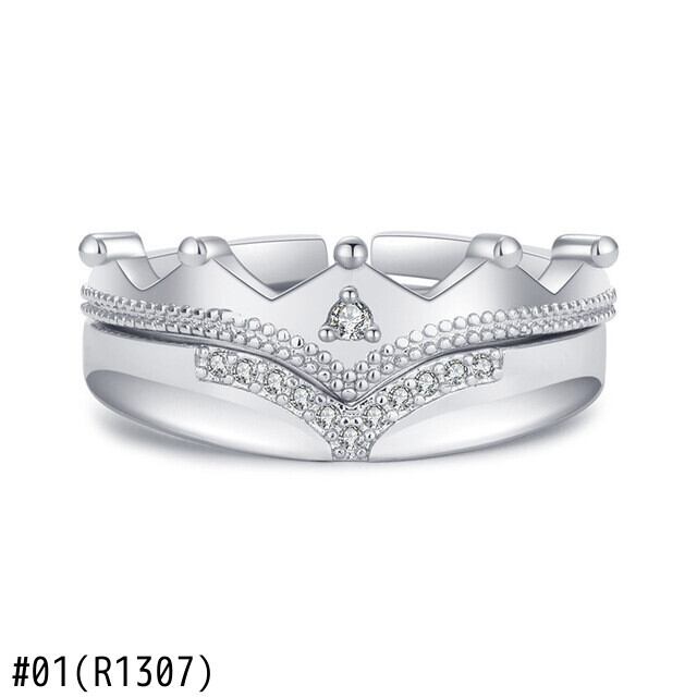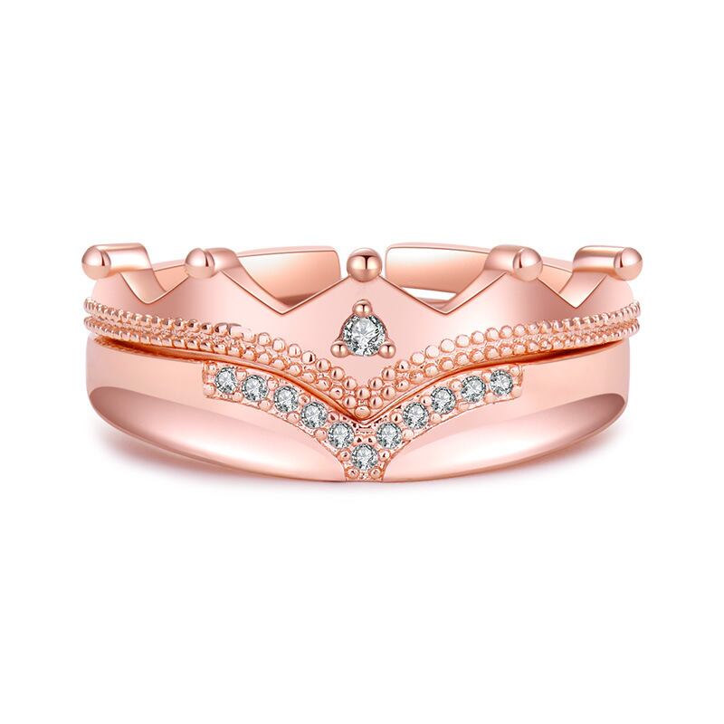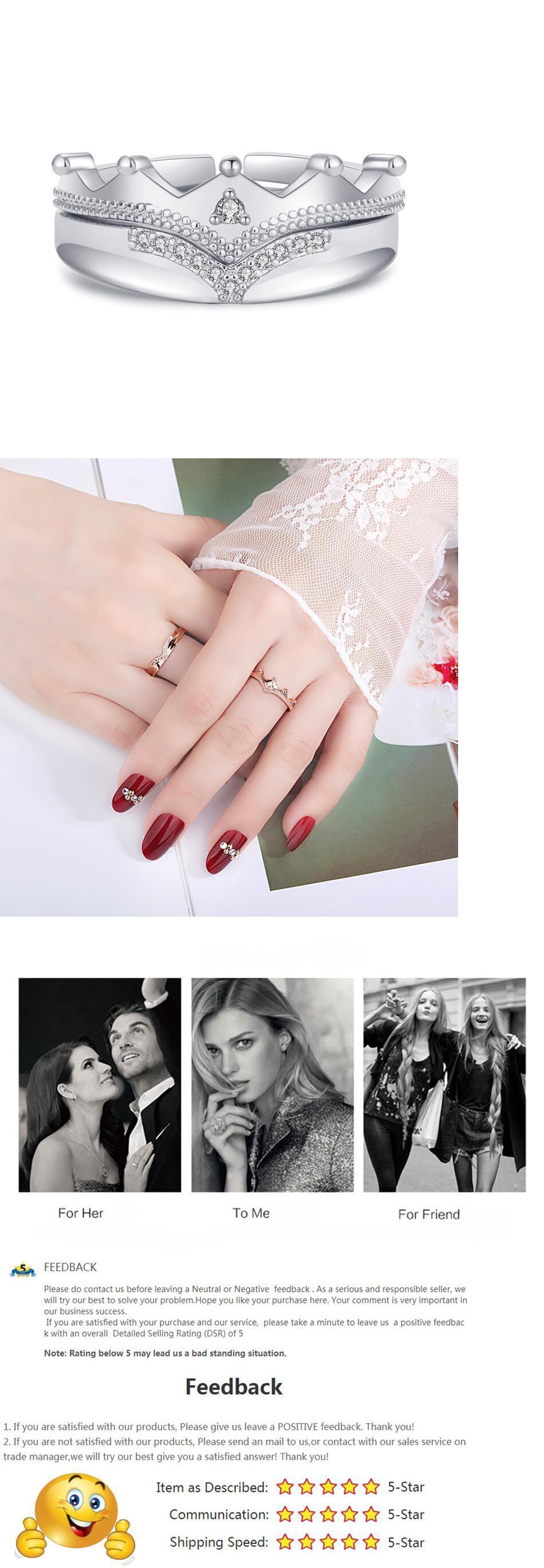 LIVVY 2 ピース/セット高級クラウンシルバーカラーリングジルコン象嵌ファイン婚約結婚式宴会カクテルジュエリー 指輪 銀