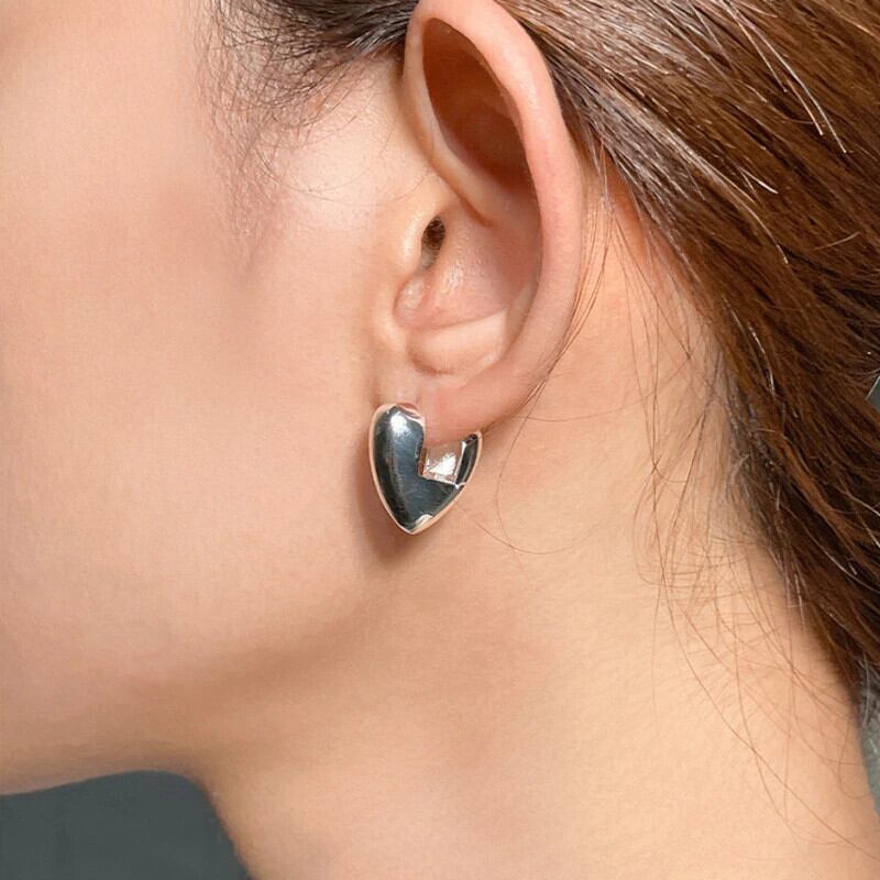 LIVVY ミニマリストシルバーカラー愛ハートイヤリング INS パーティーギフトトレンディジュエリー 指輪 銀