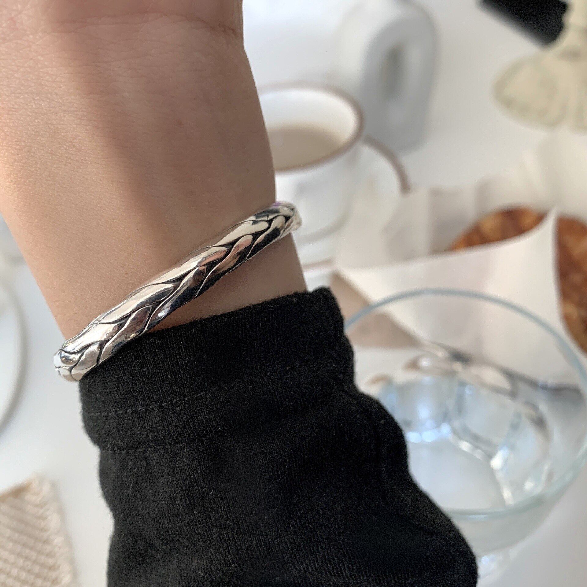 LIVVY シルバーカラー幾何学織りオープン調節可能ブレスレット絶妙手作りジュエリーパーティーギフト アジャスタブル 銀