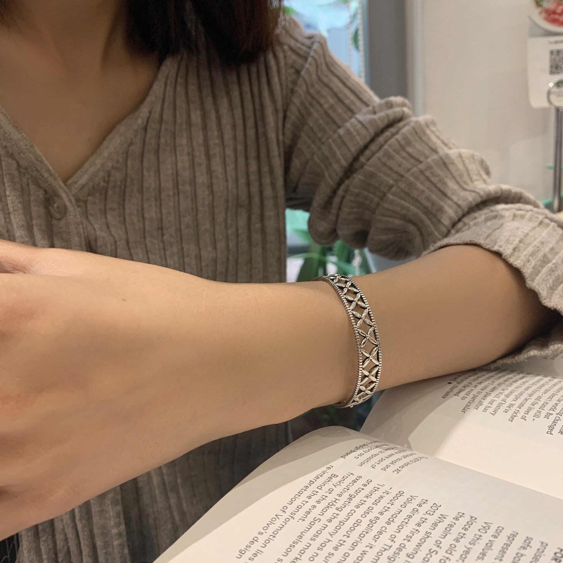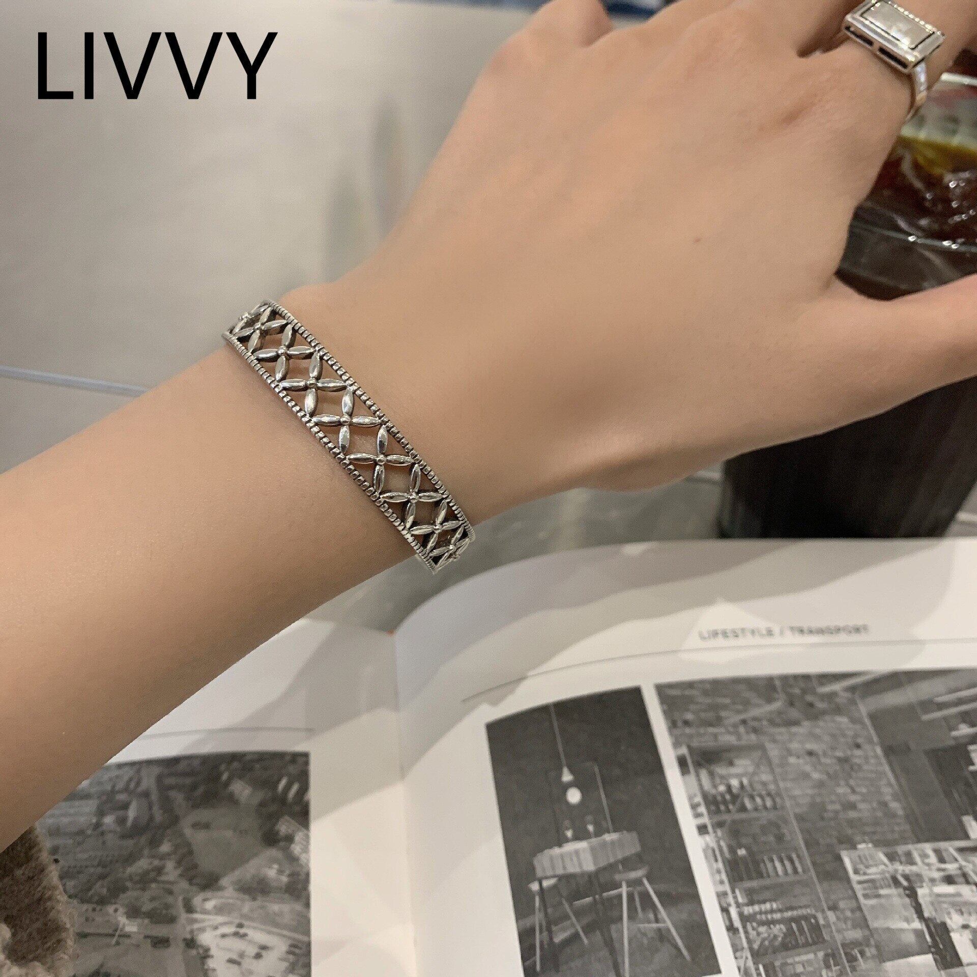 LIVVY シンプル中空幾何学ブレスレットシルバーカラークリエイティブジュエリーギフト調節可能 アジャスタブル 銀