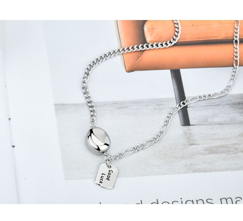 LIVVY シルバーカラー幸運ネックレスユニーク手作りジュエリーギフトラウンドネックレス レース Oネック 銀