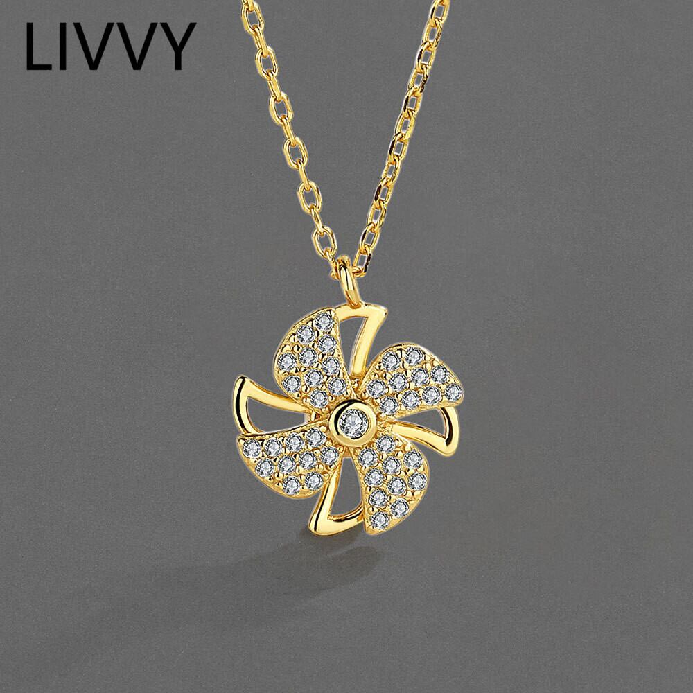 LIVVY シルバーカラートレンディ回転可能風車ジルコンペンダントネックレスパーティーウェディングチョーカージュエリー レース 銀